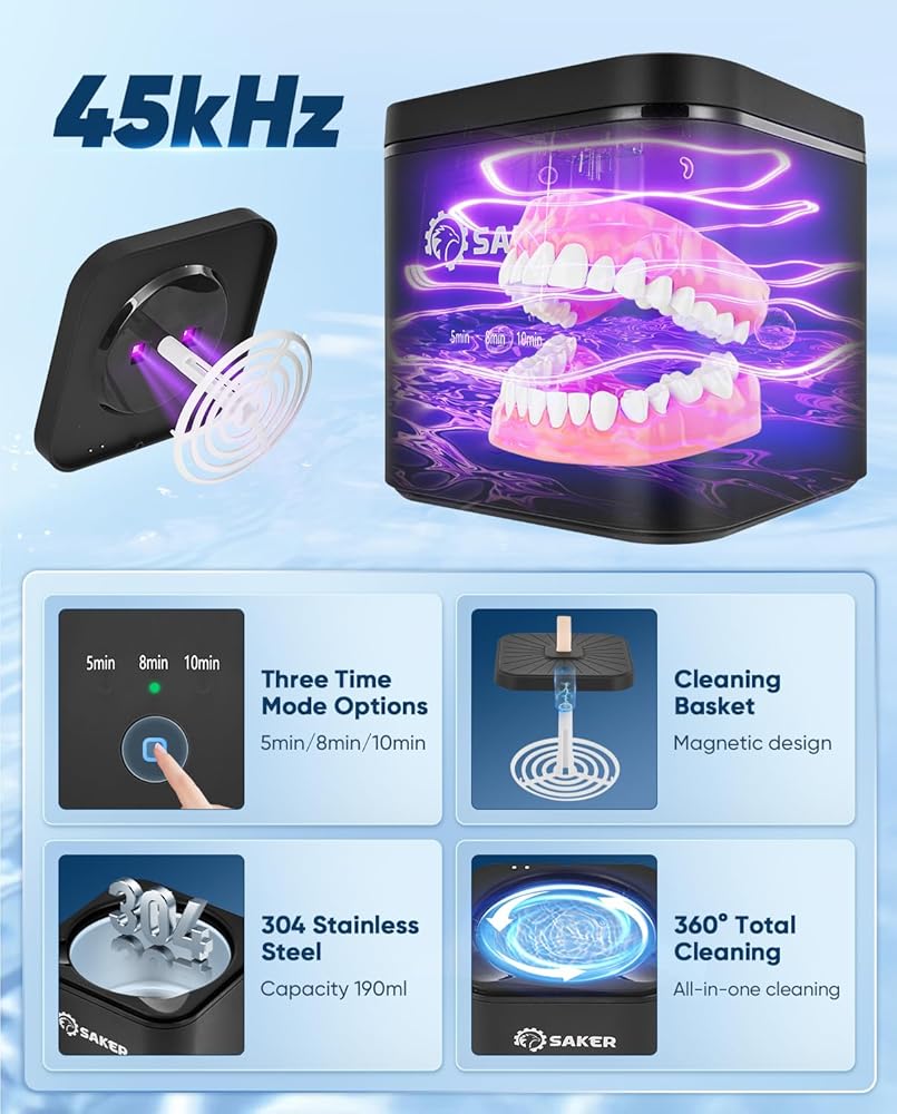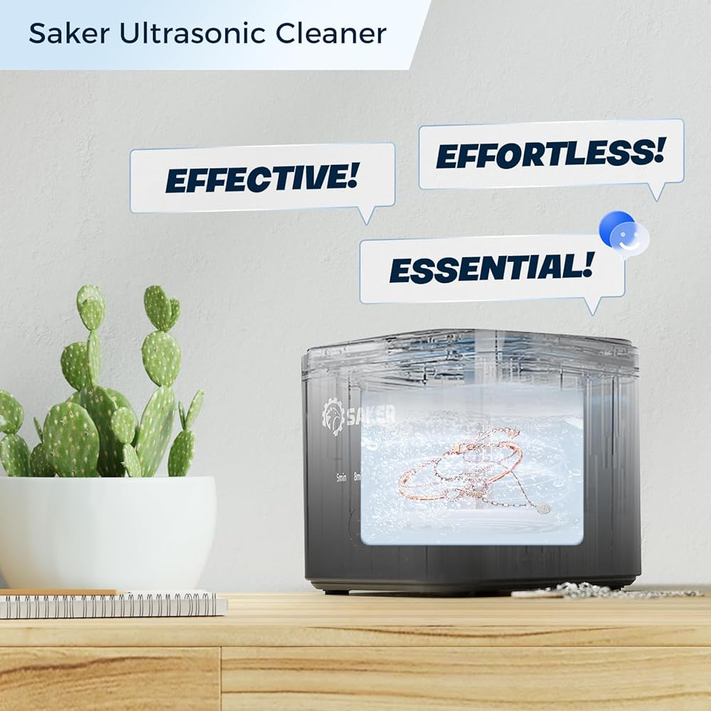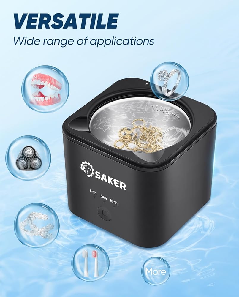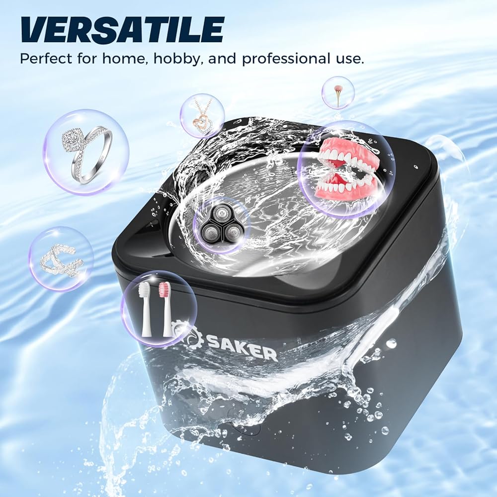 【تطهير شامل】ليس مجرد منظف، بل مطهر أيضًا! يضمن المثبت المنظف بالموجات فوق الصوتية من Saker التطهير الشامل، والقضاء على ما يصل إلى 99.99% من البكتيريا والفيروسات الضارة. مثالية لتنظيف المجوهرات والنظارات والساعات وأطقم الأسنان وأكثر من ذلك، مما يضمن أن أغراضك ليست نظيفة فحسب ولكنها آمنة صحيًا.