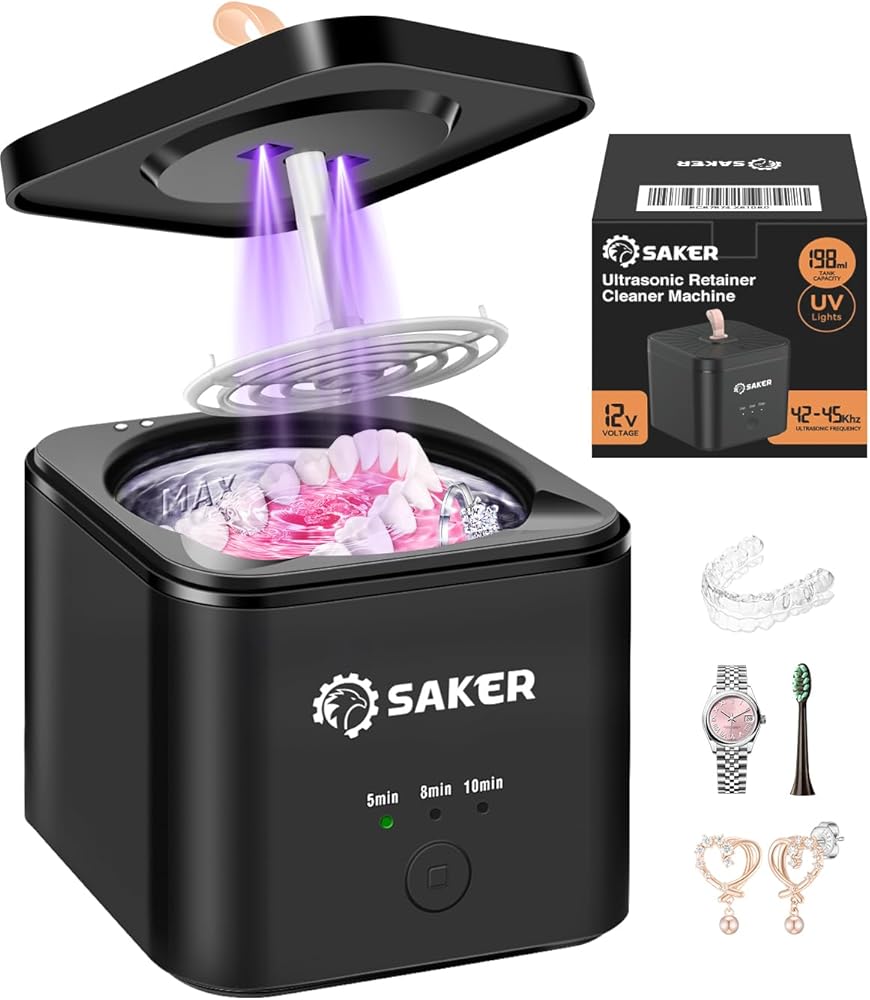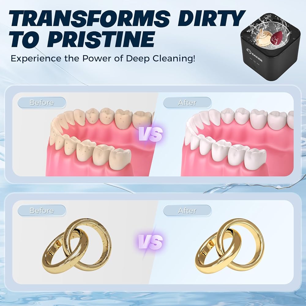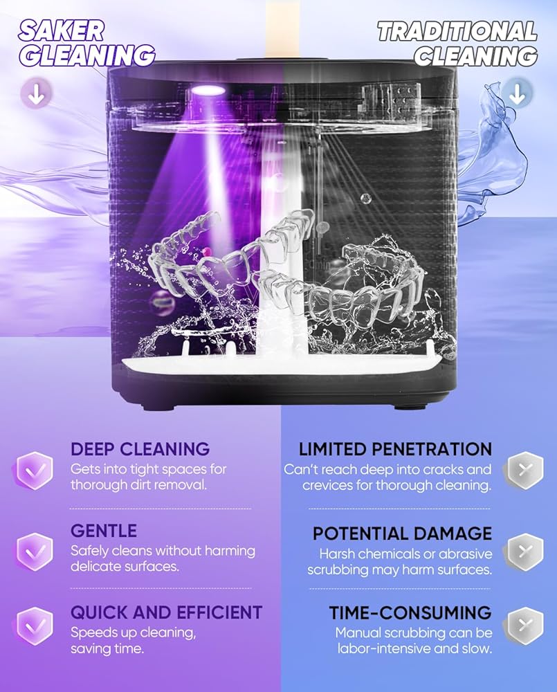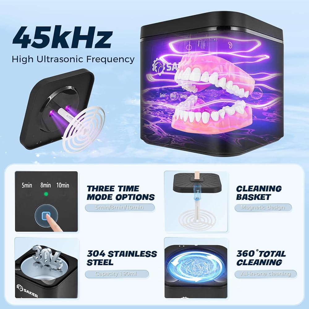 【تطهير شامل】ليس مجرد منظف، بل مطهر أيضًا! يضمن المثبت المنظف بالموجات فوق الصوتية من Saker التطهير الشامل، والقضاء على ما يصل إلى 99.99% من البكتيريا والفيروسات الضارة. مثالية لتنظيف المجوهرات والنظارات والساعات وأطقم الأسنان وأكثر من ذلك، مما يضمن أن أغراضك ليست نظيفة فحسب ولكنها آمنة صحيًا.