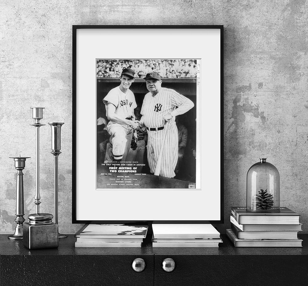 • 1943 Ted Williams and Babe Ruth shaking hands in dugout of Fenway Park, July 13, 1943