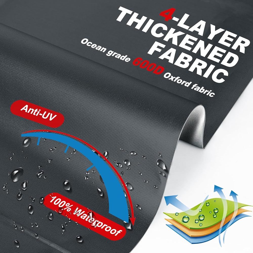 🚤Marine Grade Heavy Duty Ski & Wakeboard Tower Boat Cover: 4-Layer Thickened Fabric, made of 100% waterproof coating + marine grade 600D oxford fabric + Anti-UV coating + PU Coating. Won't shrink or stretch, designed for extra durability, Maximum water repellency, UV protection and all-weather protection, Protect your boat including the tower from scratch, dust, rain, snow, and UV rays.