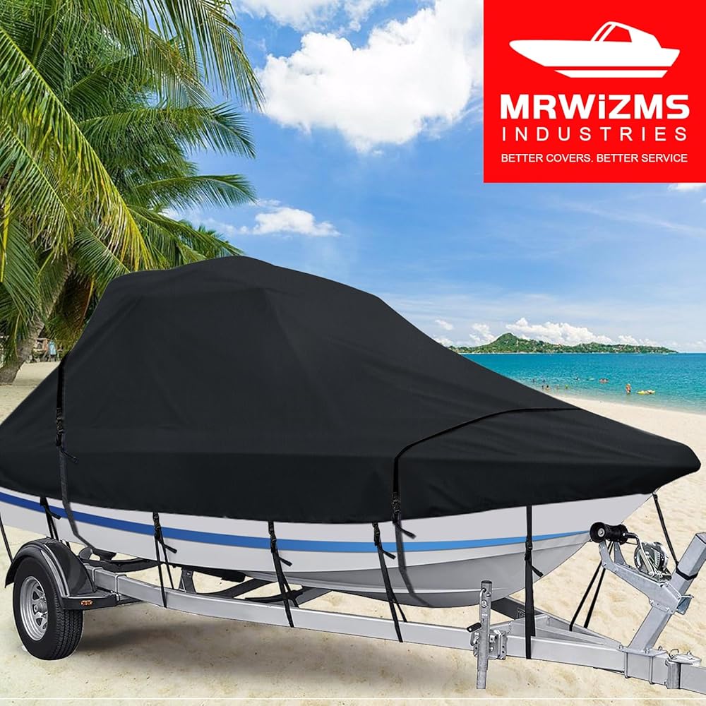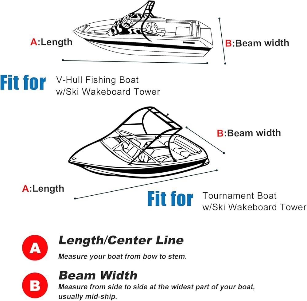 🚤Universal Wakeboard Boat Cover: MRWiZMS's Wakeboard Tower Boat Cover are designed to fit V-Hull Fishing Tournament Boat w/Ski Wakeboard Tower. Fit the following sized boats: 20', 22' 23', 24' 25', 26' and 27'.