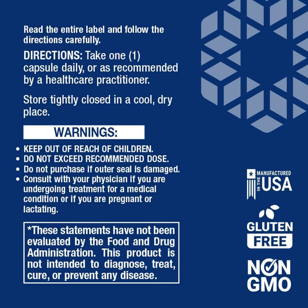 120-Day Supply: This product contains a 120-day supply when taken according to the directions on the bottle. Directions: Take one (1) capsule daily, or as recommended by a healthcare practitioner.