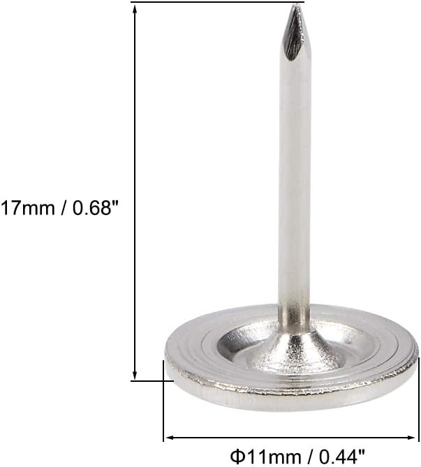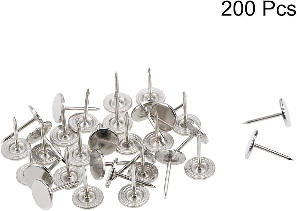 دبابيس أظافر للمفروشات من uxcell مقاس 11 مم × 17 مم برأس مسطح للأثاث، لون فضي للألواح الأمامية للأريكة، 200 قطعة