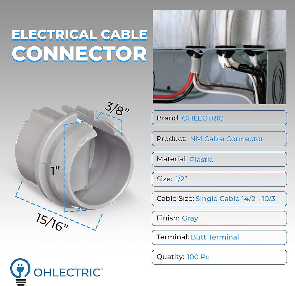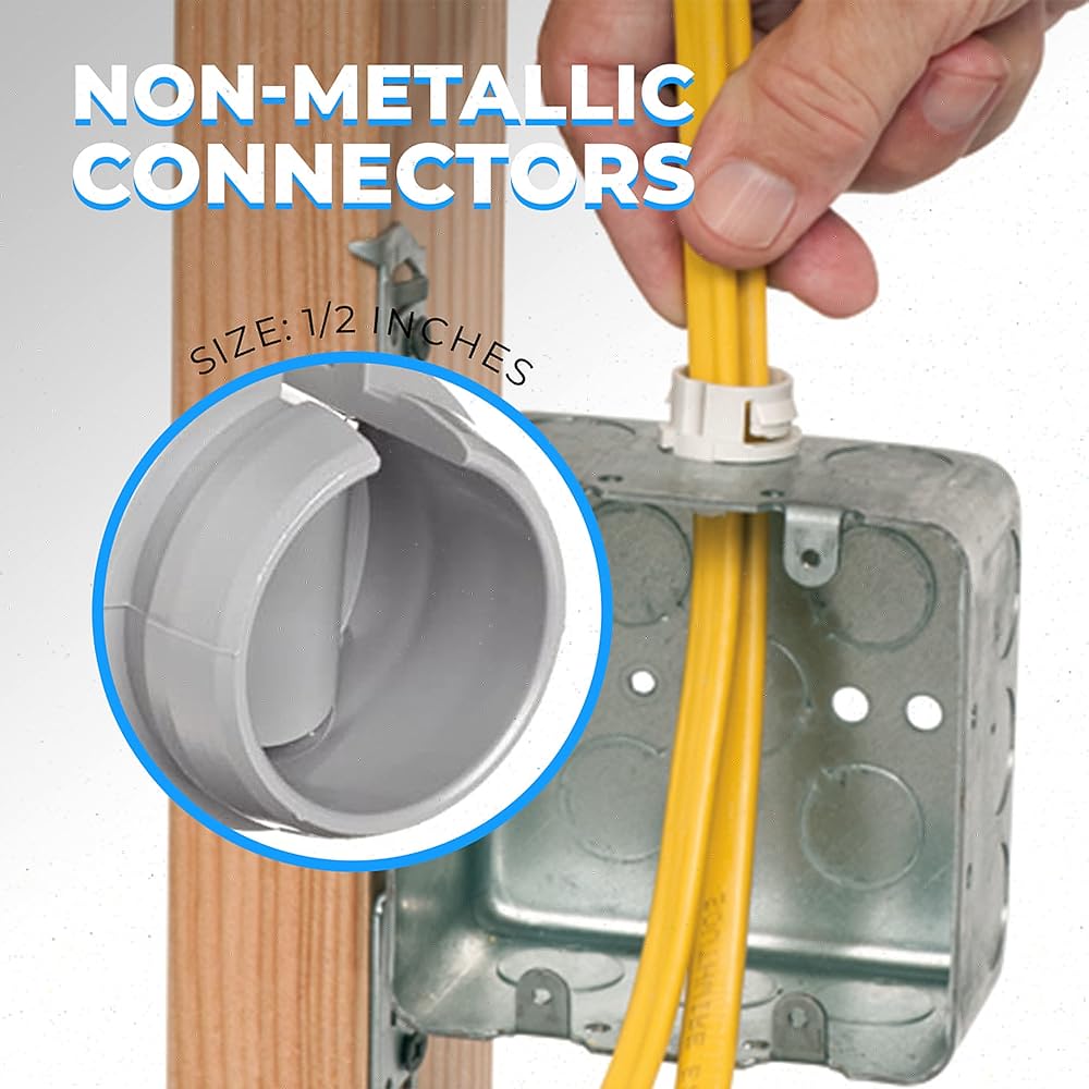 UNIQUE FEATURES: Our indoor cable connector comes with useful features that can be used for fixing more than one. Since it is non-metallic, you can easily remove it from knockouts and a labor-saving connector with a 60-pound test pull.