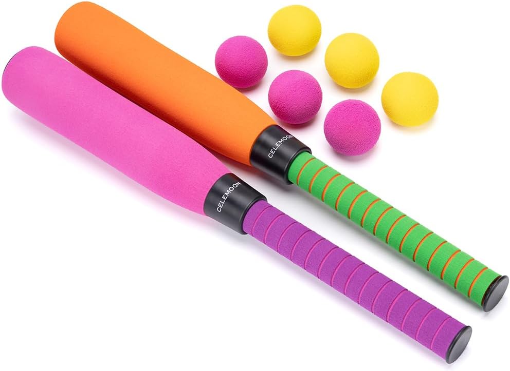 "CELEMOON Foam Kids Baseball Bat and Ball Toy Set - Let your kids enjoy baseball game safely! Are you always worrying about your kids who love sports & who want to practice baseball getting hurting or anything getting destroyed? Now here comes CELEMOON Foam Baseball Toy set to your problems! It is safe to children, furniture, pets, windows, bystanders, etc. - Foam material is super safe for kids to play - As the baseball bat and balls are all made of soft foam, you never worry about kids getting hit by the metal bat like before. Furniture would also be safe since the baseballs are soft as well. - Lightweight and Perfect for kid beginners- The bat is 22 inch long and weighs 0.3 lb, the diameter of the ball is 2.7 inch and it only weigh 0.4 oz. The bat is durable but yet light-weight for young kids to hold and swing. Everything is perfectly sized for young children! - Wash it directly if get dirty - If the balls or bat get dirty you could just wash it directly and let air dry it. They will looks as new as before and never worry about the cleanliness. - Organize it easily - It comes with a plastic carry bag to organize the bat and the balls all together. Never worry about the ball loosing and convenient to take it on the go! ***Recommend for kids age OVER 3 yrs*** Package List 2 x Baseball Bat 6 x Balls 1 x Carry Bag"
