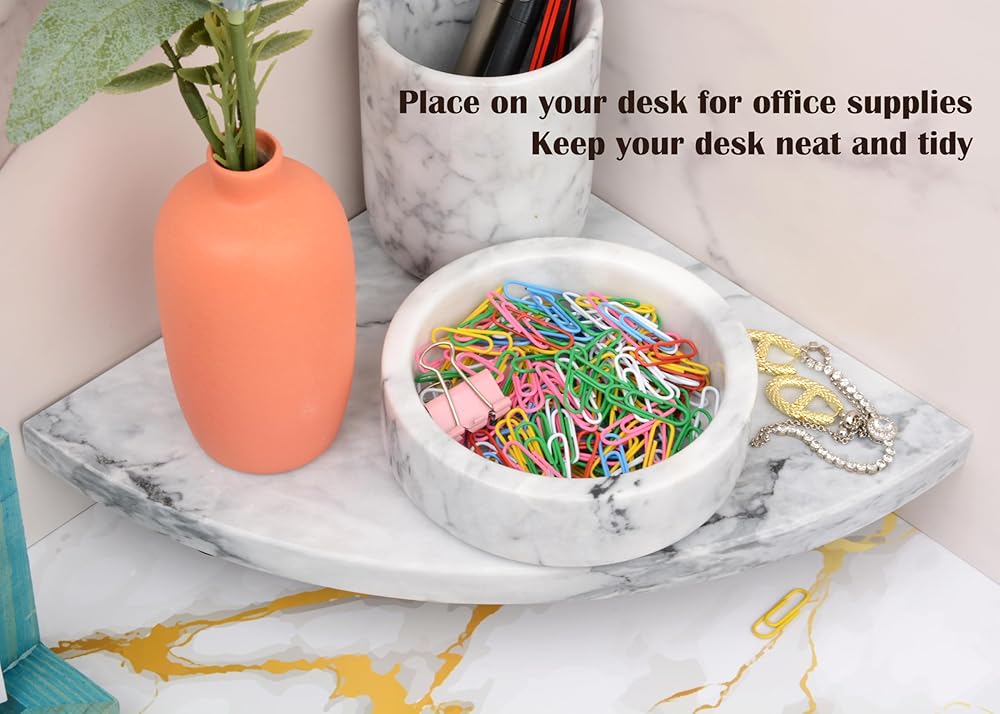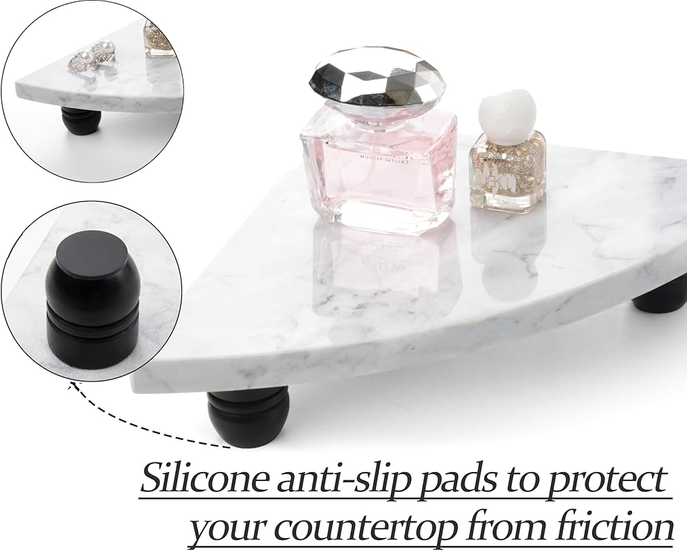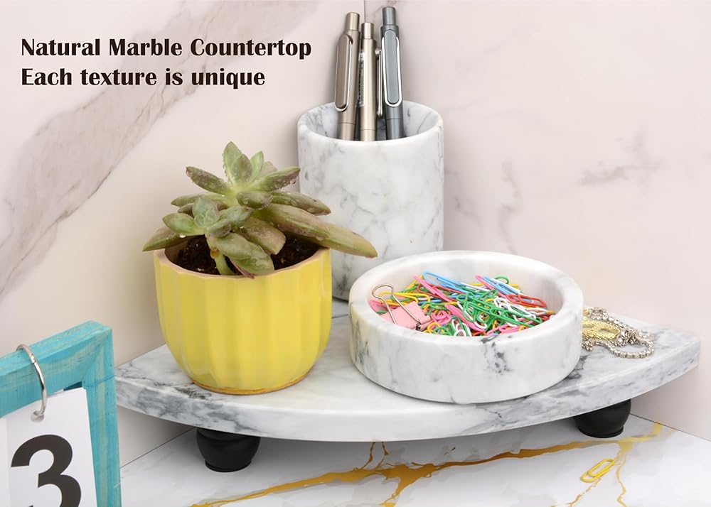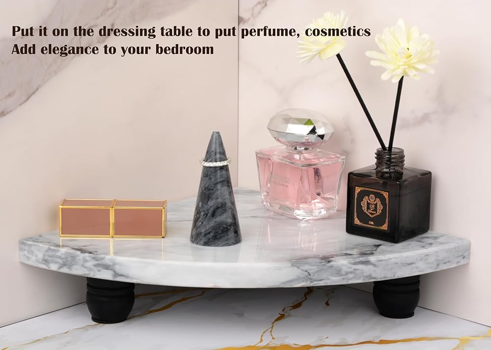 حامل عرض رخامي رائع: حامل العرض فريد من نوعه بشكل جميل ويمكن ترتيب ديكورك ومستحضرات التجميل والمزيد من عناصر سطح العمل بطريقة منظمة وملفتة للنظر.
