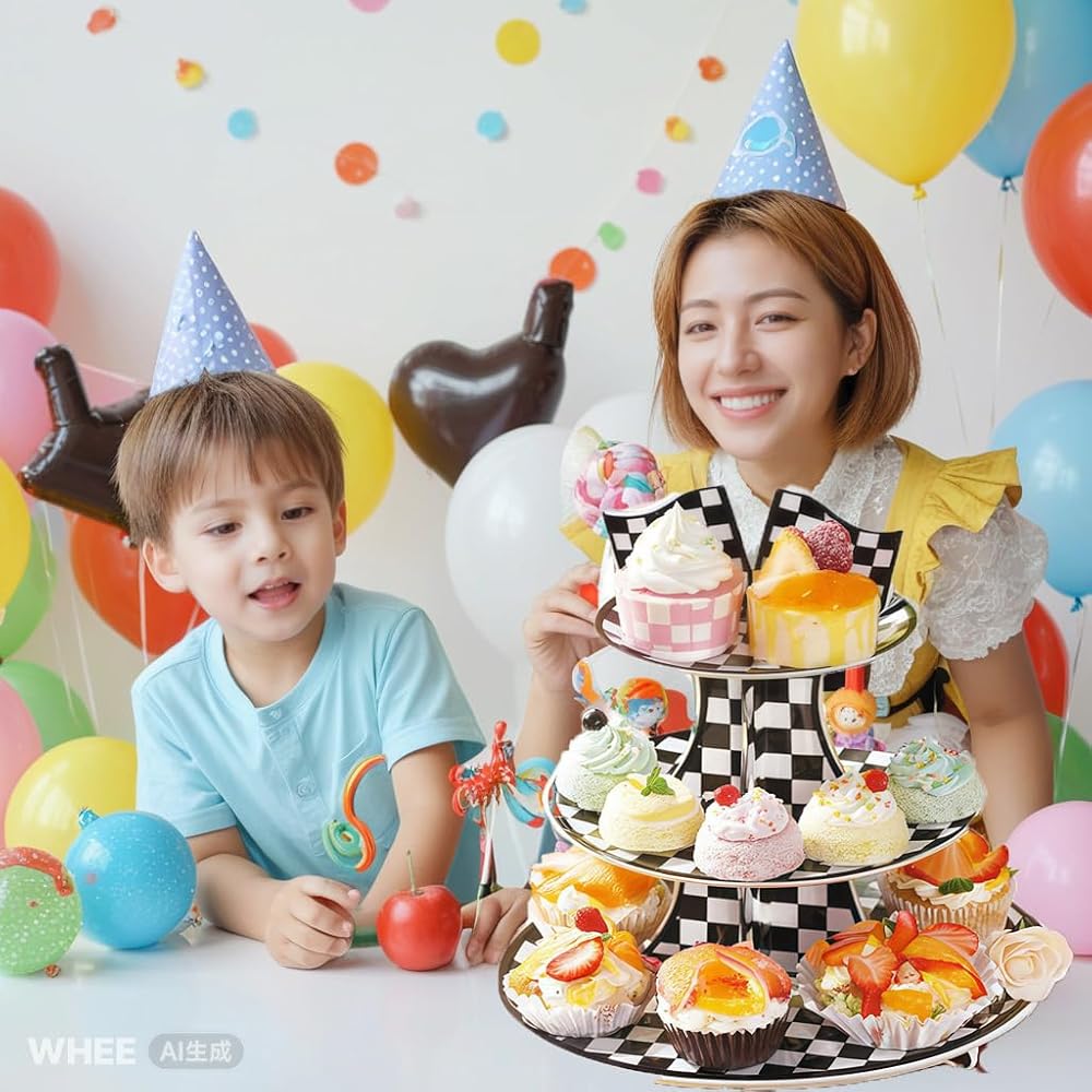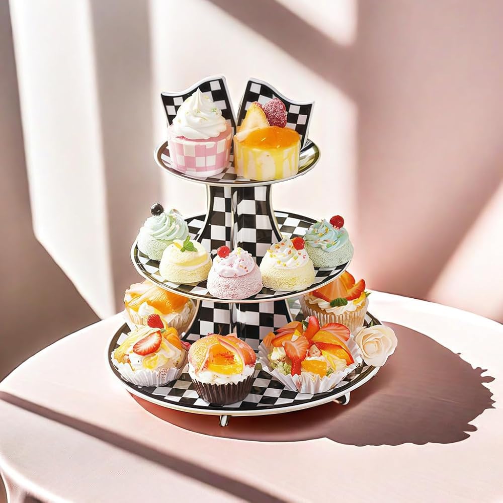 [Practical Design] Stacked 3-tier cupcake Stands, use it to display cupcake cookies, candies, fruits, cakes and more. Adopt fast car theme pattern and mermaid decoration, add more elegant atmosphere for kids' party decoration.