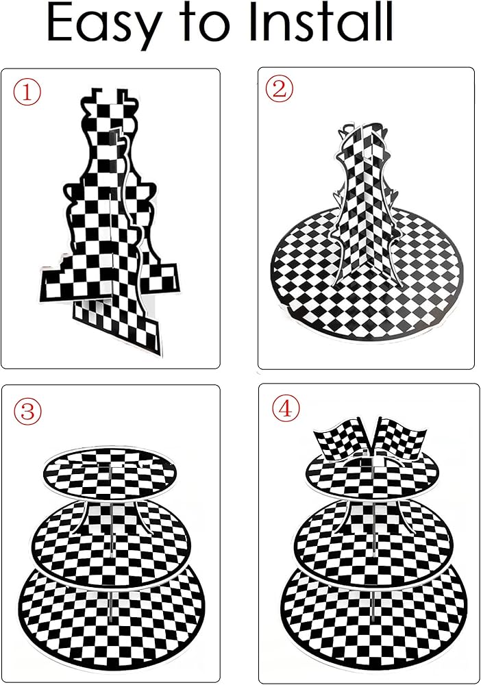 [Product Size] The cupcake tower is made of thick cardboard, durable and easy to clean. Stacked 3-tier design with three different plate sizes, 11.4 inches, 9.5 inches and 7 inches.