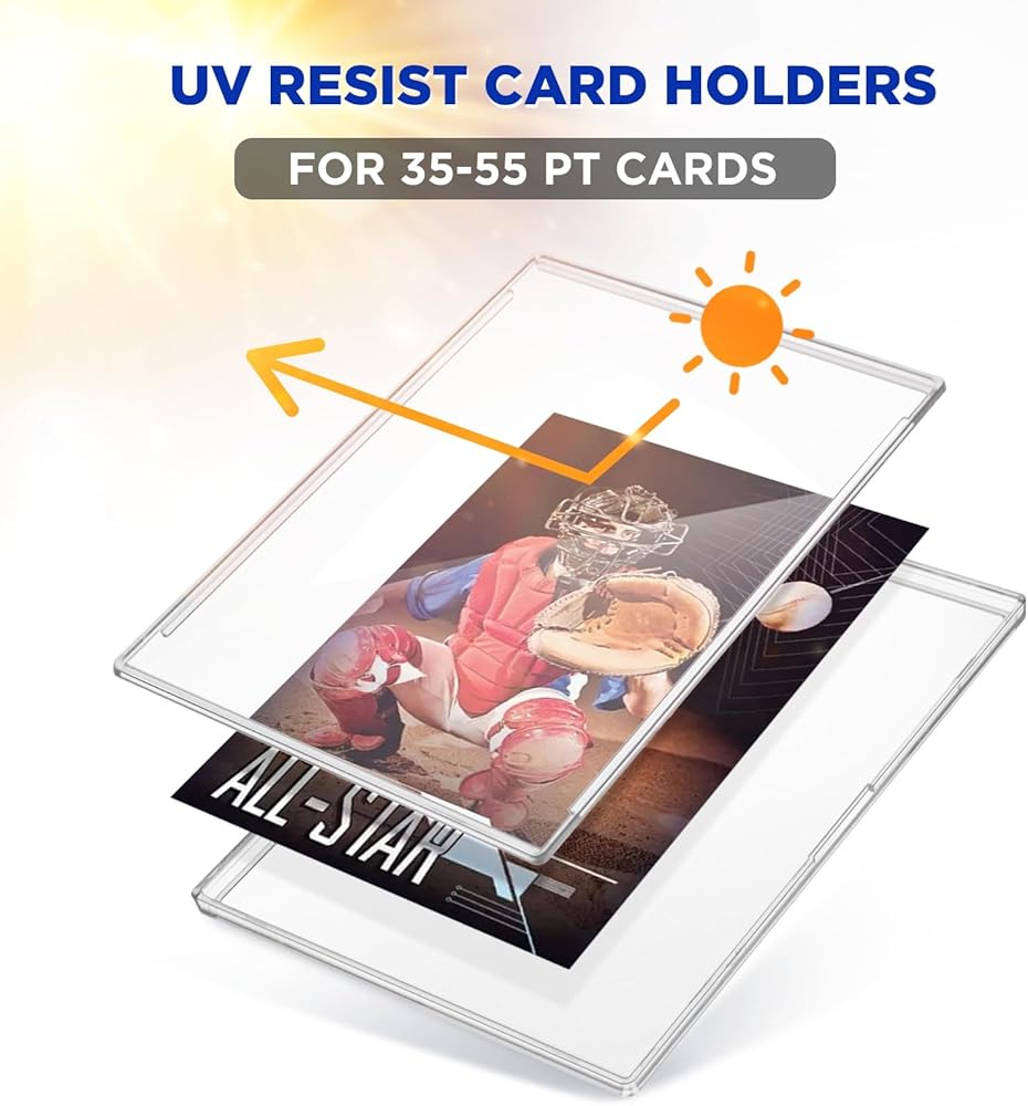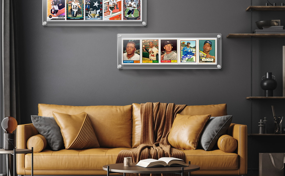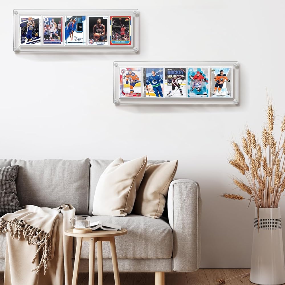 إطار عرض بطاقة التداول مع حامل بطاقات، حامل بطاقة بيسبول للحماية من الأشعة فوق البنفسجية، إطار بطاقة أكريليك شفاف مثبت على الحائط بسعة 5 بطاقات للبطاقات الرياضية