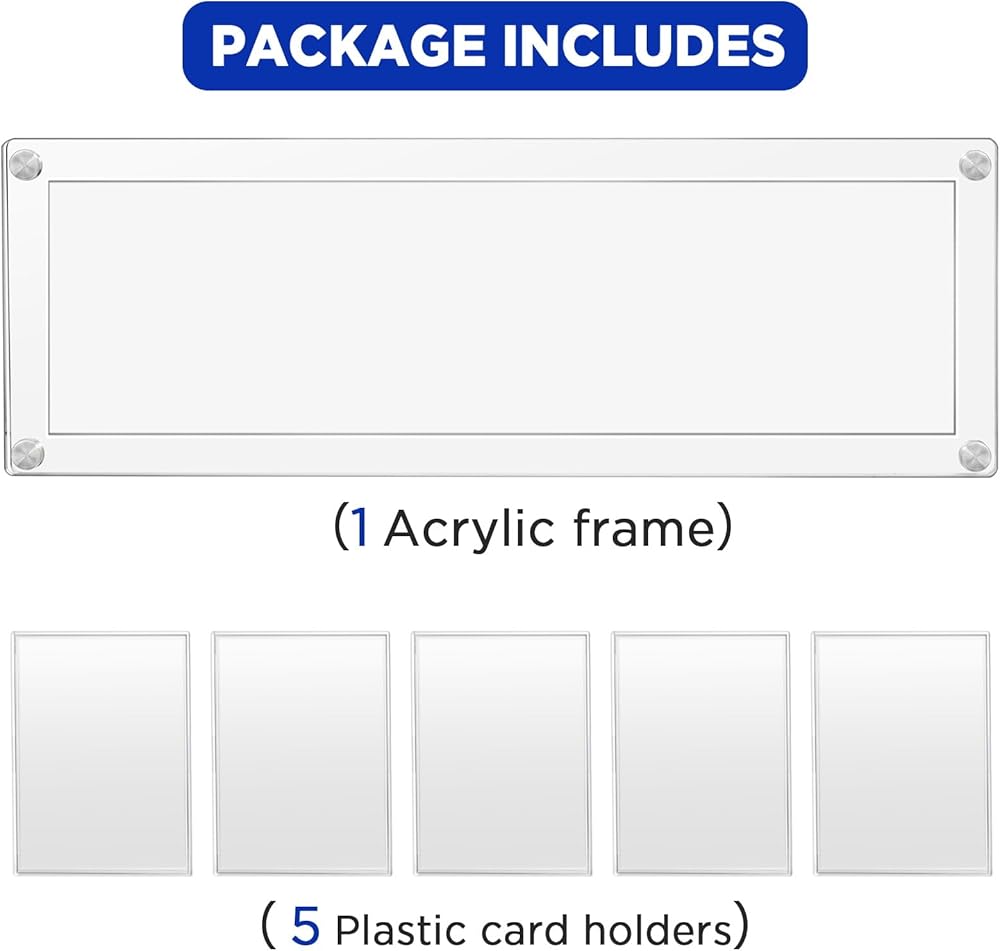 • العبوة: 1 إطار بطاقة أكريليك + 5 حاملات بطاقات بلاستيكية صغيرة.
