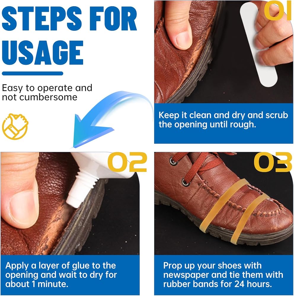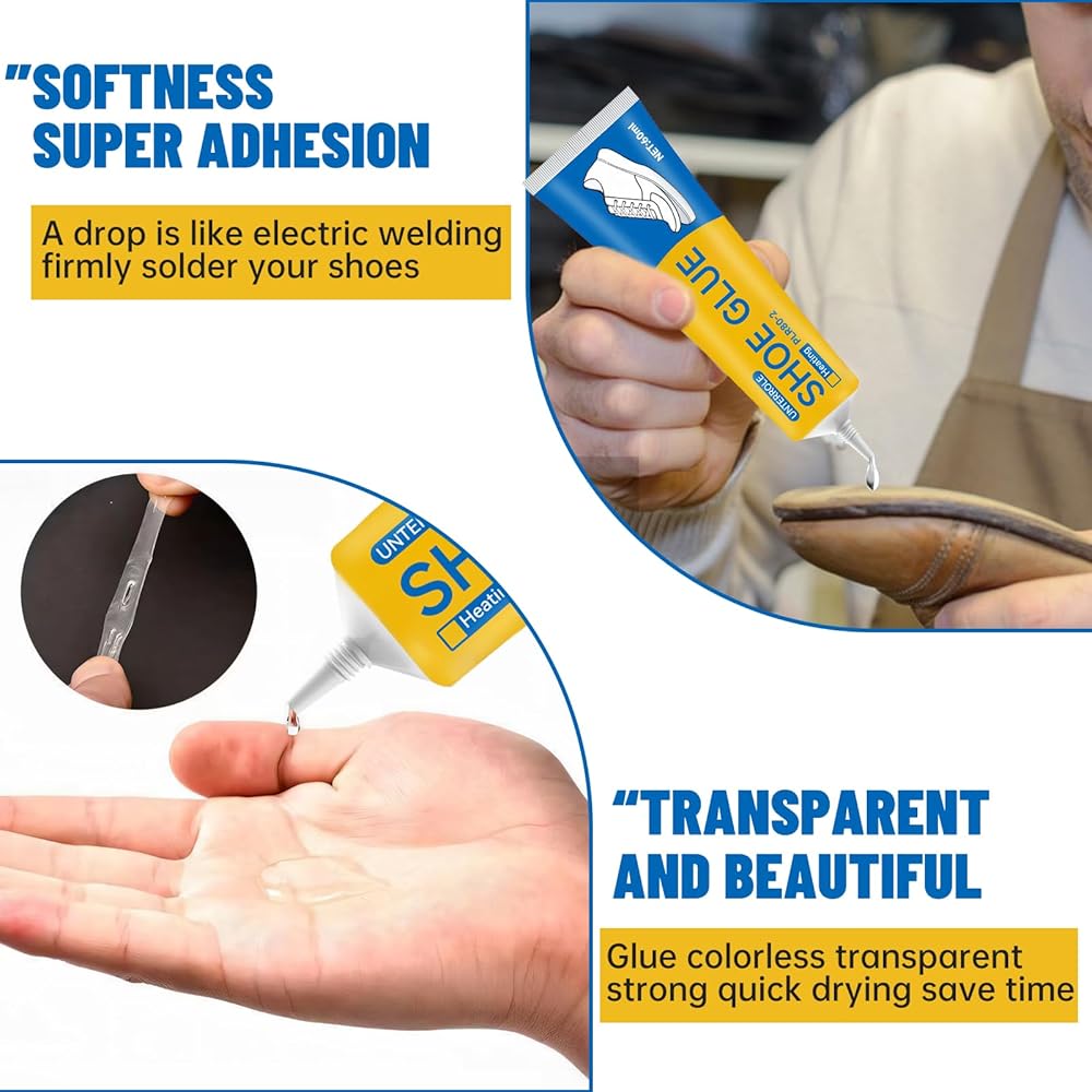 • Wide Application: Transparent shoe glue sole adhesive can be widely used for boots, leather shoes, sneakers, high heels or hiking shoes, it is also a great sealant and adhesive for leather belts, handbags, handicrafts