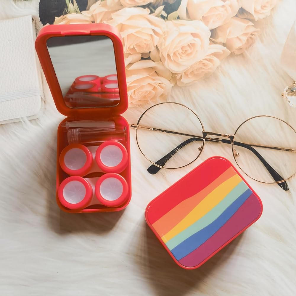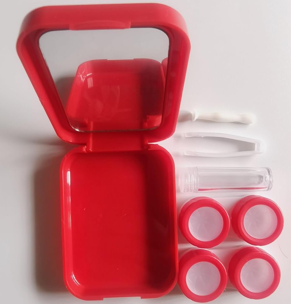 The Kit Includes: Each contact lens case contains 2 lens boxes, a tweezer, a lens holder, a solution bottle and has a mirror to help with inserting contact lens. Complete assembly, convenient for daily use.