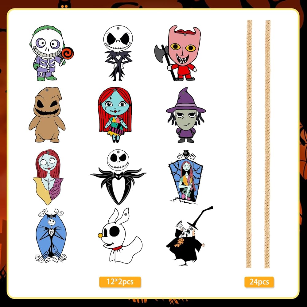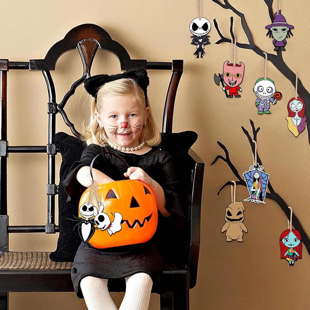 Multiple Designs for Nightmare Christmas Halloween Decorations : You will get 24pcs of different Halloween style wooden halloween decorations hanging ornaments and 24pcs special string. There are 12 styles, and there are two pieces of each style. You can easily change them to keep the festive atmosphere, which can highlight your Halloween decorations and set the Halloween party atmosphere. In addition, our Halloween birthday party decorations wooden hanging tree ornaments are designed with a variety of cute Halloween classic elements, with enough quantity and styles to meet your holiday decorating needs.