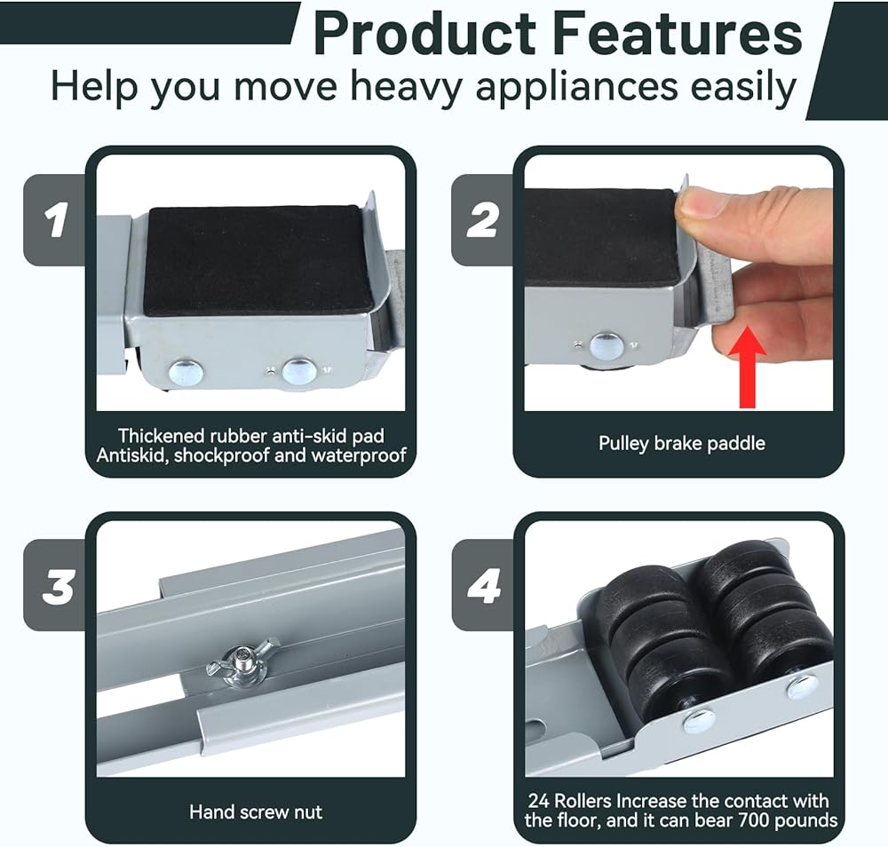 - سعة الوزن العالية: تدعم بكرات أجهزتنا ما يصل إلى 200 كجم، وهي مثالية لنقل الأجهزة الثقيلة مثل الثلاجات والغسالات.