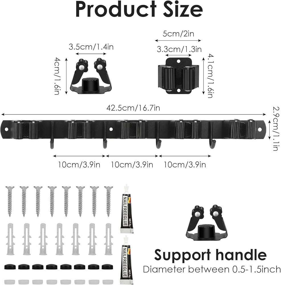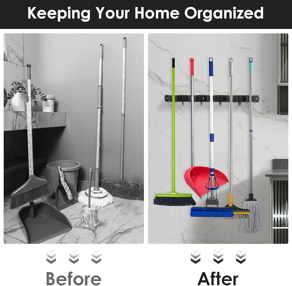 Don't let clutter take over your home. With our wall hanger for brooms and mops, you can create a tidy, efficient, and visually appealing storage area. Whether you need to organize tools in your garage, keep cleaning supplies handy in your laundry room, or store garden equipment, this versatile and durable holder is the perfect solution. Order yours today and experience the ultimate in home organization!