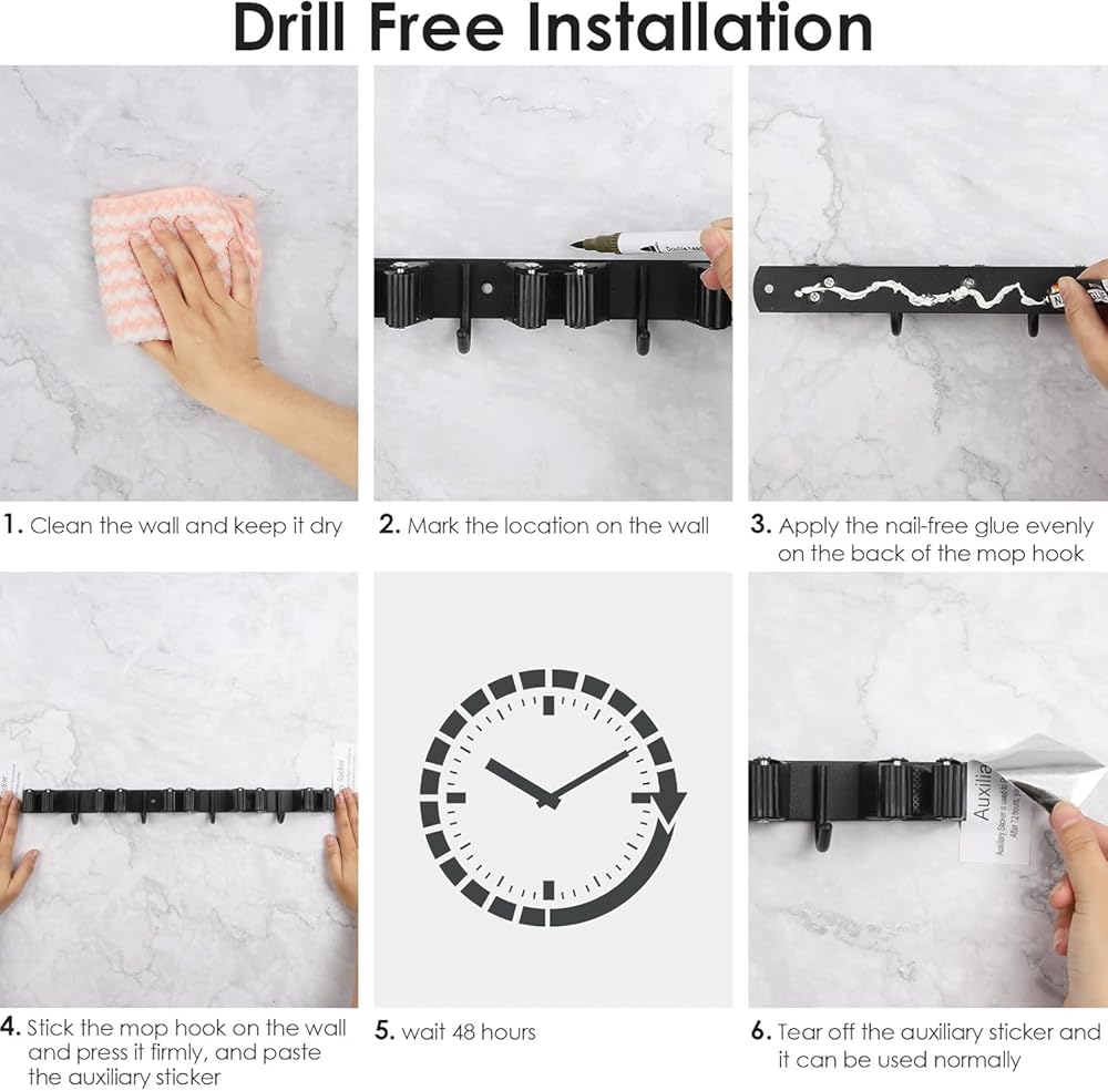 Setting up your new broom and mop organizer is a breeze with two installation methods to choose from. For smooth surfaces, opt for the self-adhesive method – it's quick and easy. For rough surfaces or heavy items, the screw mounting method provides extra strength and stability. You can have your organizer up and ready in just minutes.