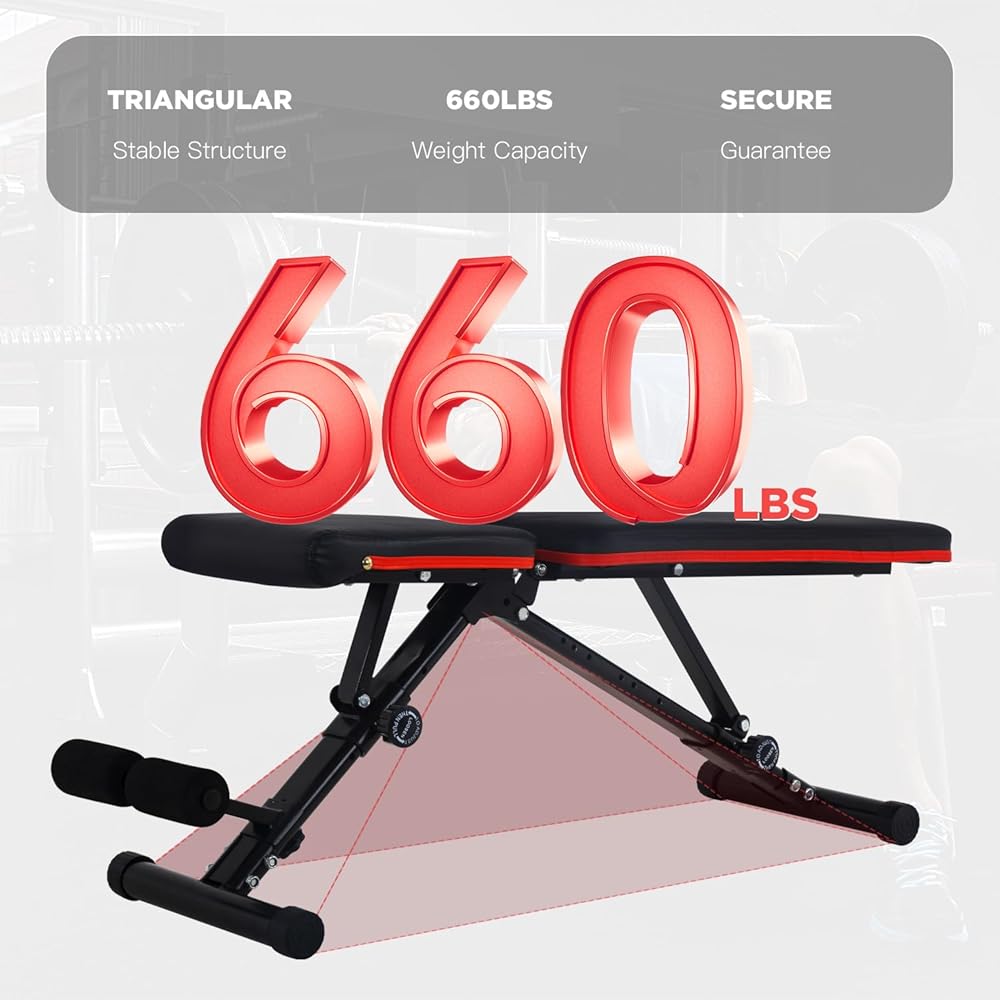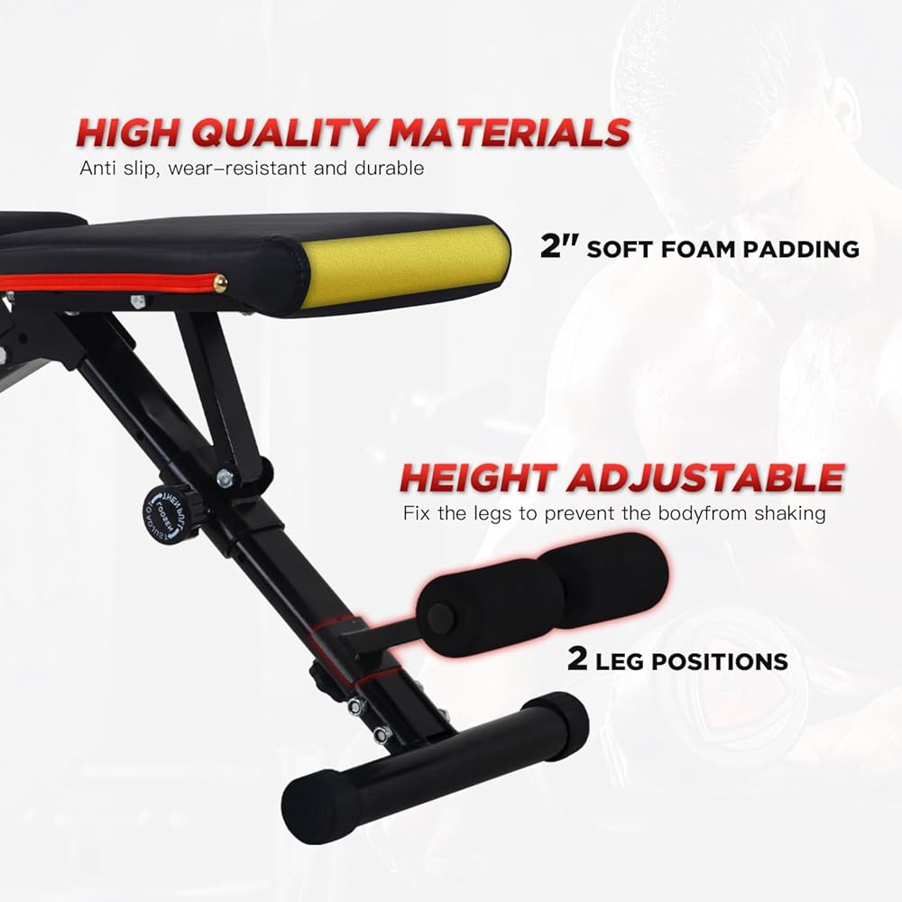 مقعد وزن قابل للتعديل من FDW مع تدريبات القوة القابلة للطي لتمارين القوة المنزلية في صالة الألعاب الرياضية المنزلية ومقاعد التمارين الرياضية، مقعد لضغط مقاعد البدلاء، مقعد متعدد الوظائف - سعة عالية القوة 660 رطلاً
