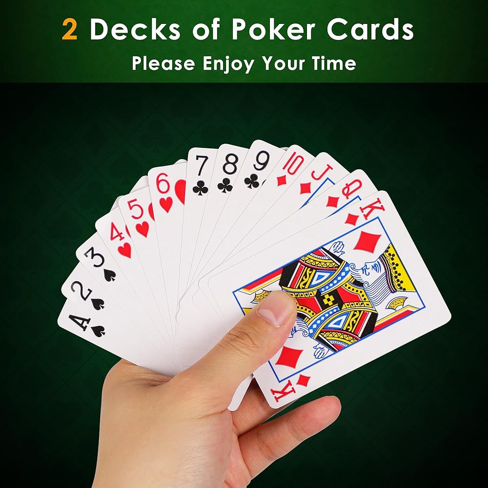 مجموعة شرائح البوكر عالية الجودة - رقائق مركبة من الطين بوزن 14 جرامًا مع علبة من الألومنيوم، تتضمن مجموعتين من بطاقات البوكر، وموزع بلاستيك، ومكفوفين صغيرين ومكفوفين كبيرين، مما يمنحك تجربة اللعب المثالية وشعور الكازينو الأصيل.