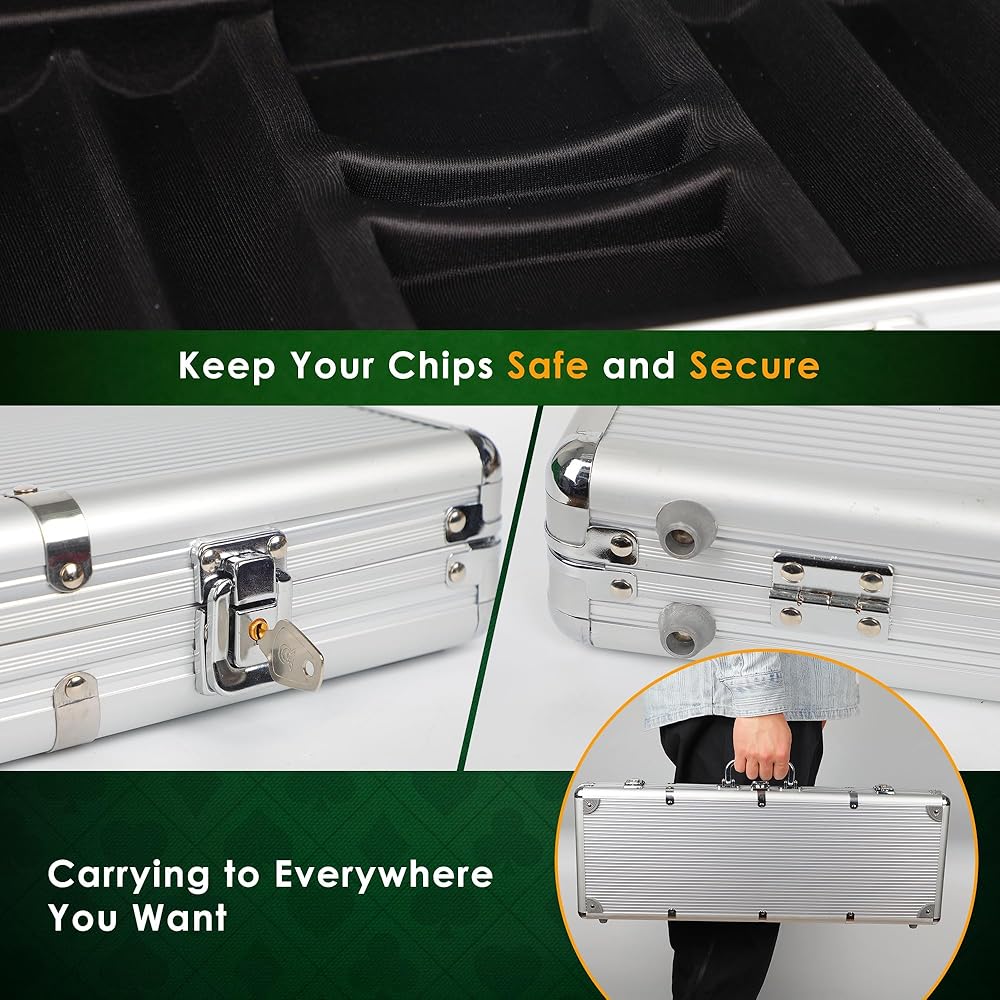 مع حقيبة متينة ومحمولة - يمكن لحقيبة الحمل المصنوعة من الألومنيوم أن تأخذ معدات رقائق لعبة البوكر في الكازينو إلى أي مكان تريده. إنه خيار جيد للأصدقاء أو حفلة العائلة. يمكنك أيضًا استخدامه لتخزين الرقائق وقفلها عند عدم استخدامها.
