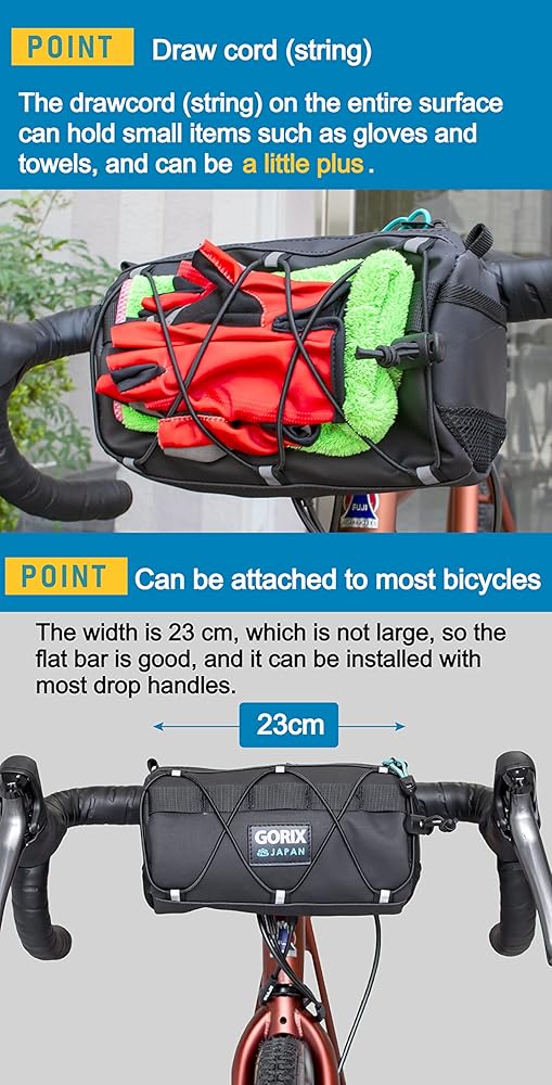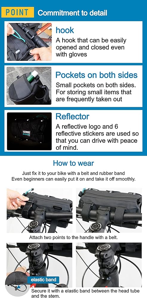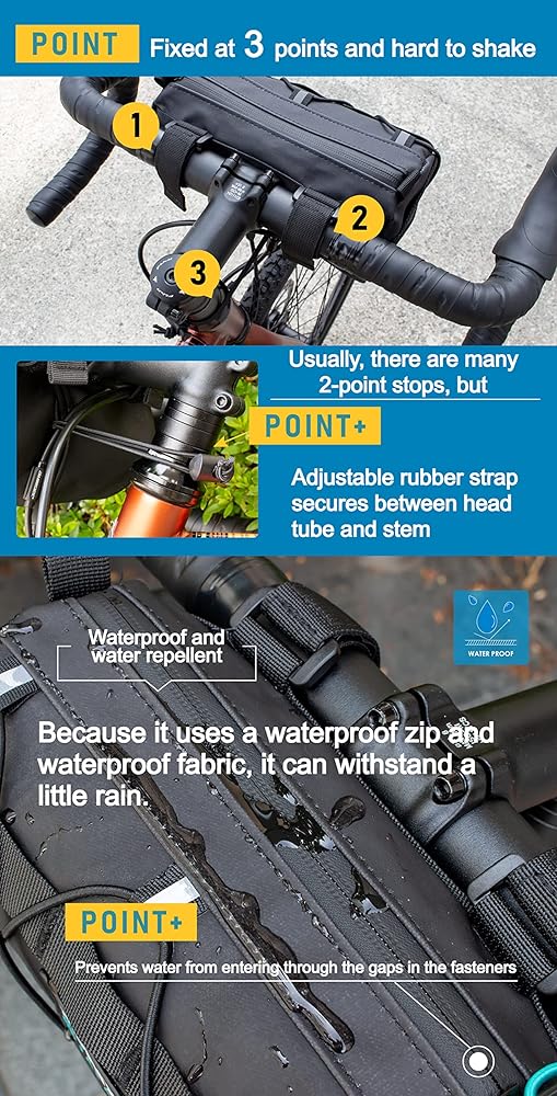 [ثابت بإحكام] يمكن تثبيته على المقبض عند نقطتين، ويمكن تثبيته بين أنبوب الرأس والساق بحزام مطاطي يمكن تعديله بعلامة إضافية. ومن خلال تثبيته بين أنبوب الرأس والساق، يتم تثبيت الحقيبة الأمامية عن طريق منع الاهتزاز قدر الإمكان.