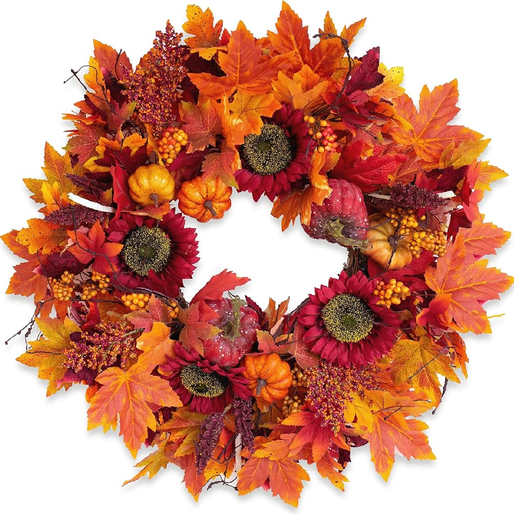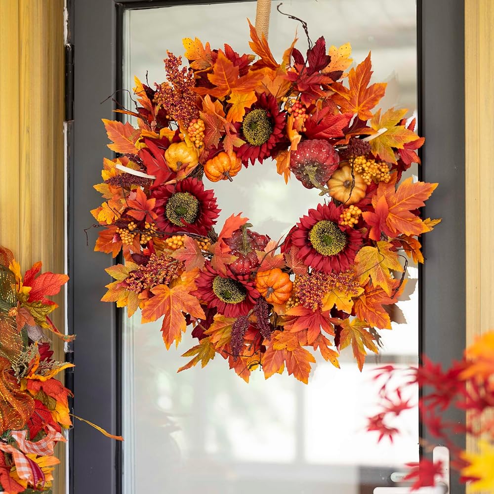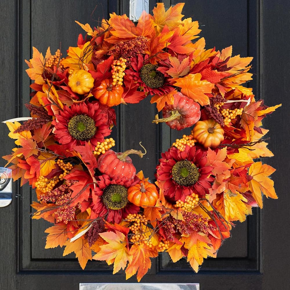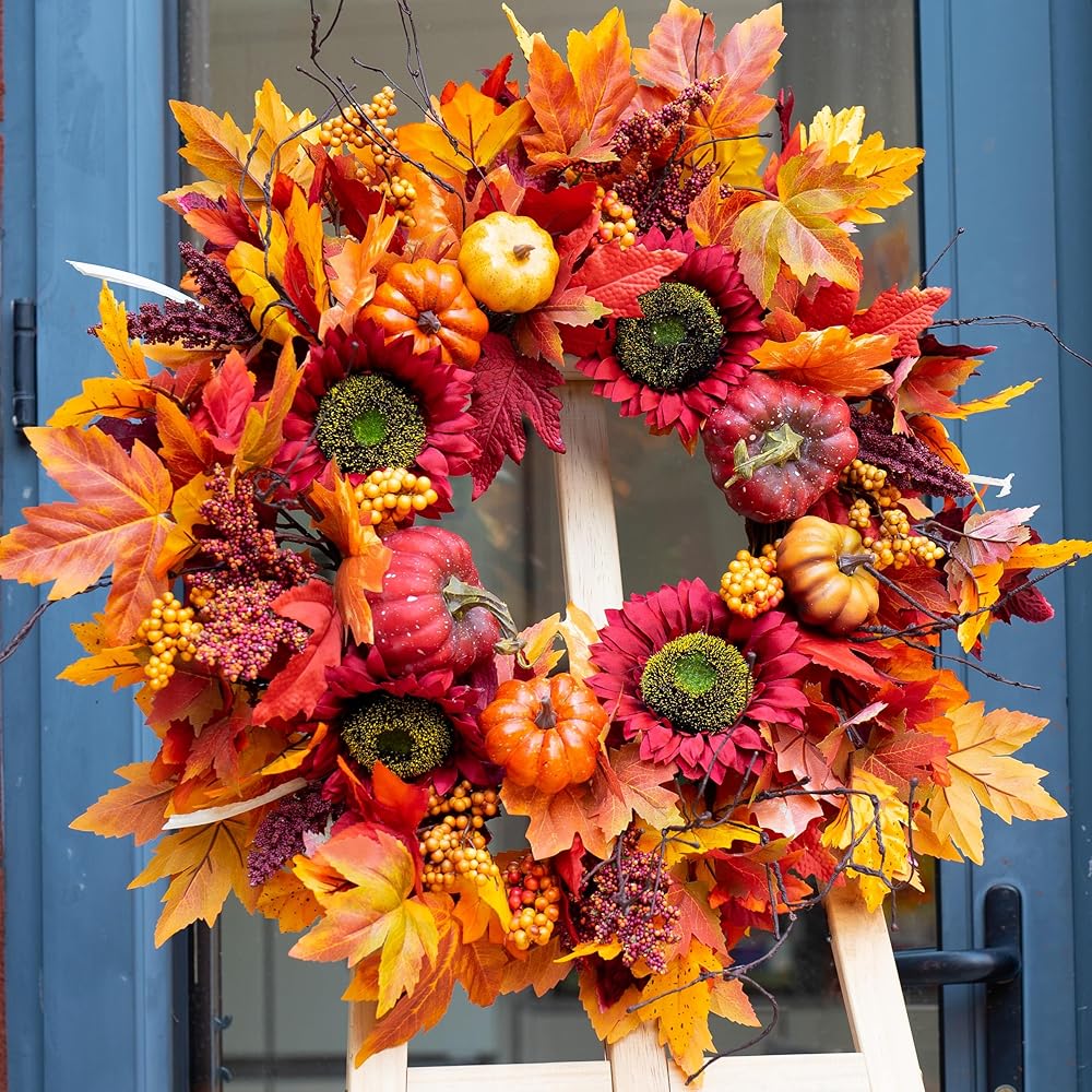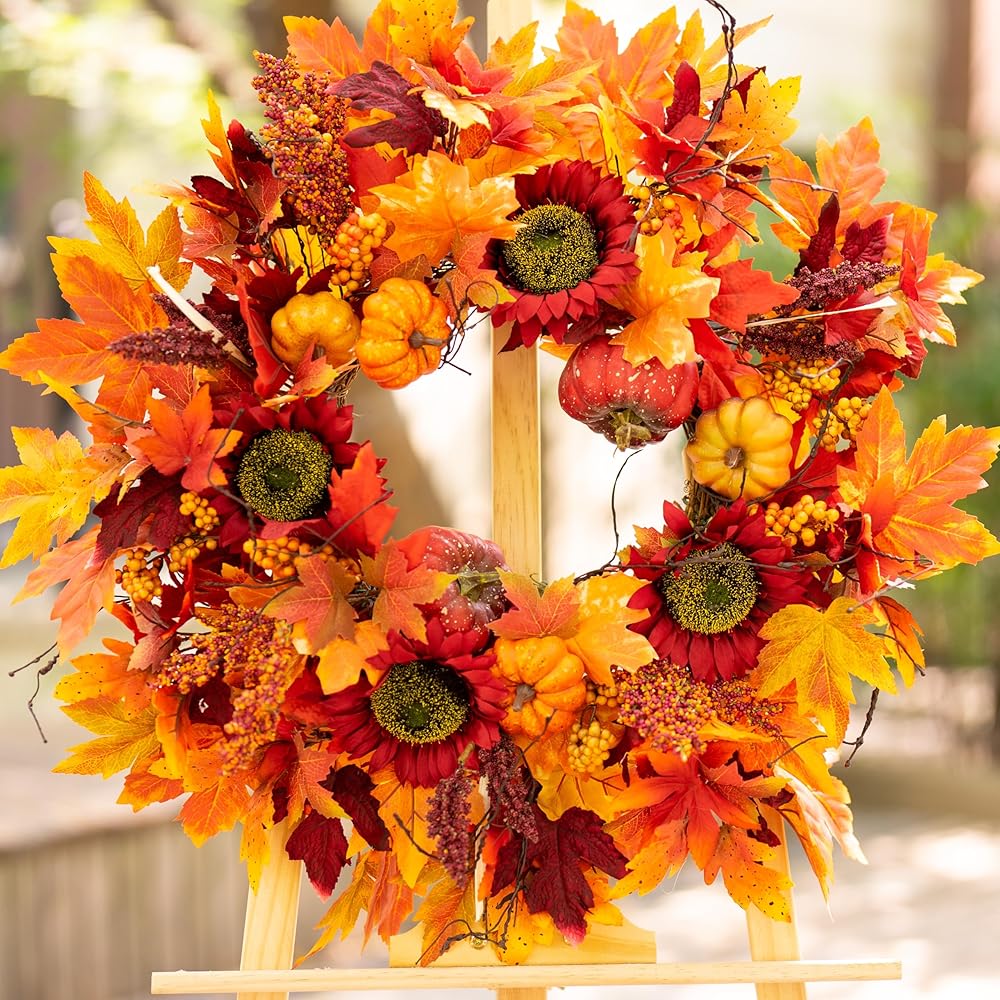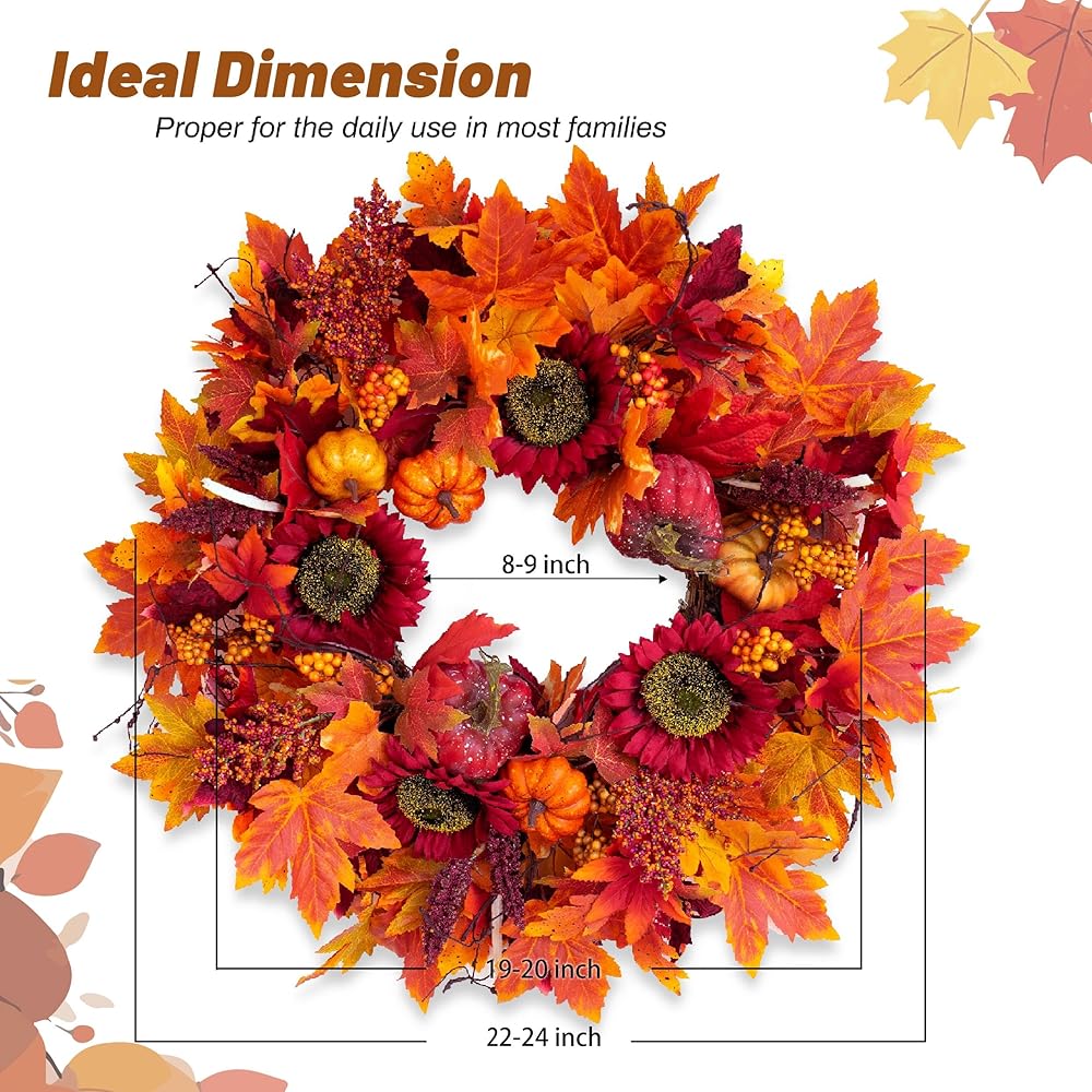 【ديكورات متعددة الوظائف】يحتوي إكليل الباب الأمامي على حلقة تعليق سلكية حتى تتمكن من تعليقه بسهولة في منزلك. كما أنه مثالي لحفلات الزفاف وعيد الفصح وعيد الشكر وغيرها من ديكورات العطلات. يمكن أيضًا تقديم إكليل الخريف الرائع كهدية جميلة مباشرة.