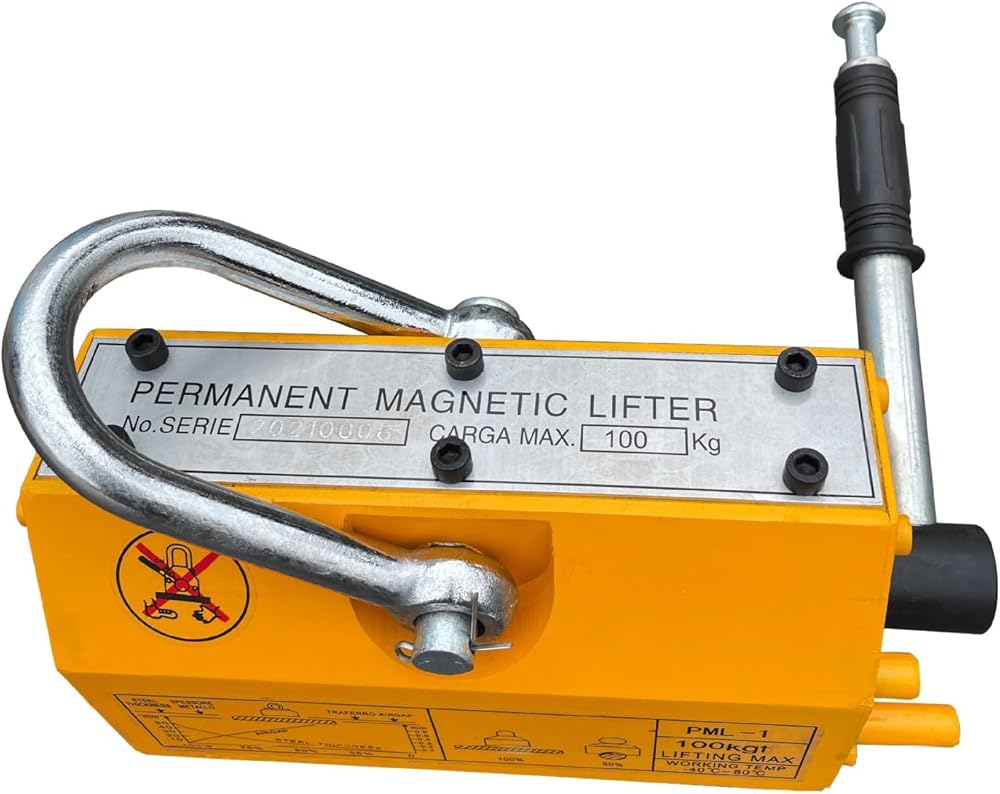 Magnetic Lifter, Heavy Duty Lifting Magnet with Release,Permanent Lift Magnets for Hoist Lift Shop Crane Steel Plate Block, Board, 220 lbs / 100kgf Pulling Capacity, 2.5 Safety Factor