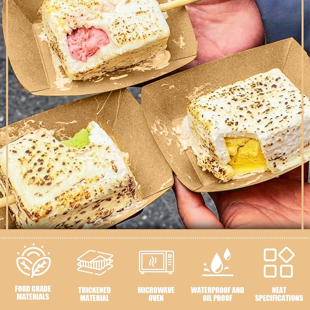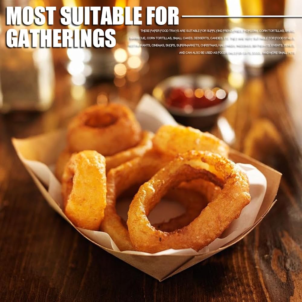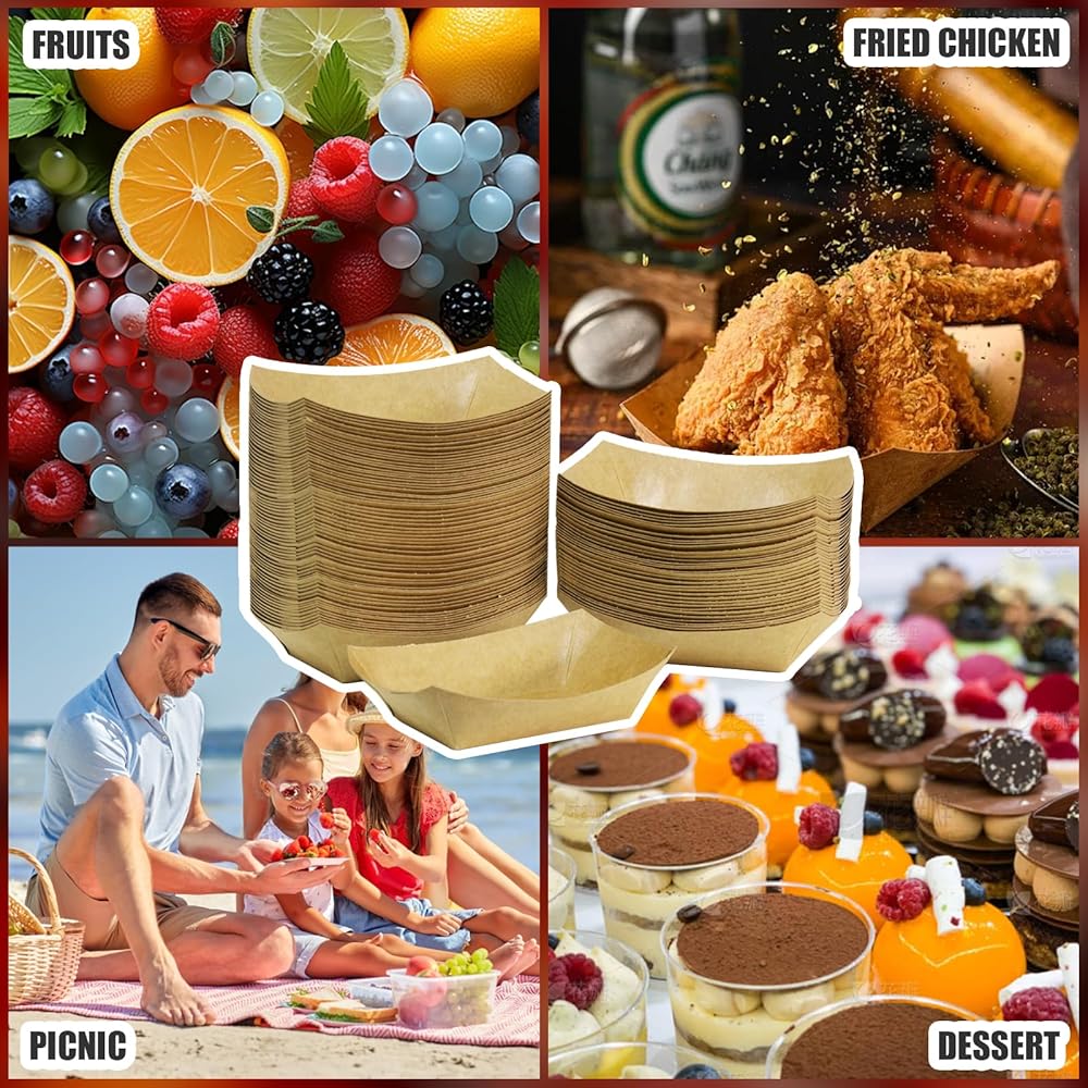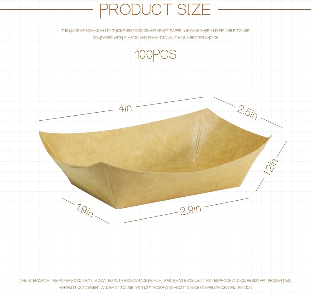 100 عبوة من صواني الطعام الورقية للاستعمال مرة واحدة، قوارب ورقية بوزن 0.25 رطل لتقديم الطعام، يمكن استخدام قارب الطعام الورقي لتعبئة وجبات خفيفة من مسحوق التوابل أو وضع طعام القطط