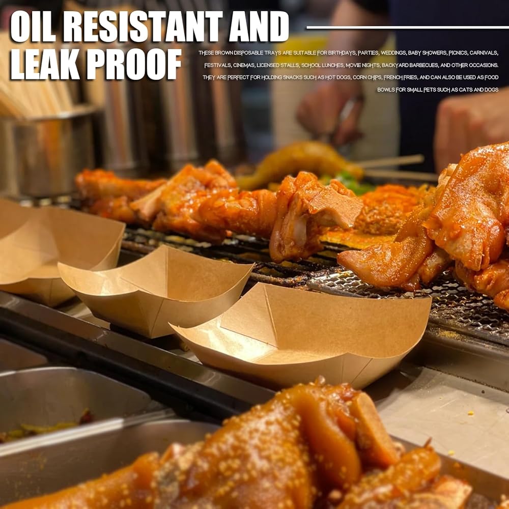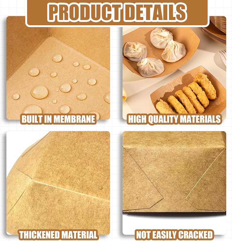هذا المنتج مصنوع من ورق كرافت فائق الجودة، المعروف بمتانته ومقاومته للتآكل. الصينية مقاومة للزيت، مما يضمن أن أي أطعمة دهنية لن تلحق الضرر بالسطح. كما أنه مقاوم للماء، مما يمنع أي سوائل من التسرب. بالإضافة إلى ذلك، فإن الصينية مقاومة للتسرب، لذلك لا داعي للقلق بشأن أي انسكابات عرضية