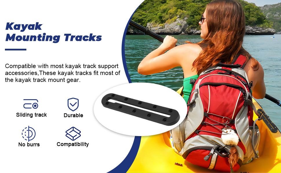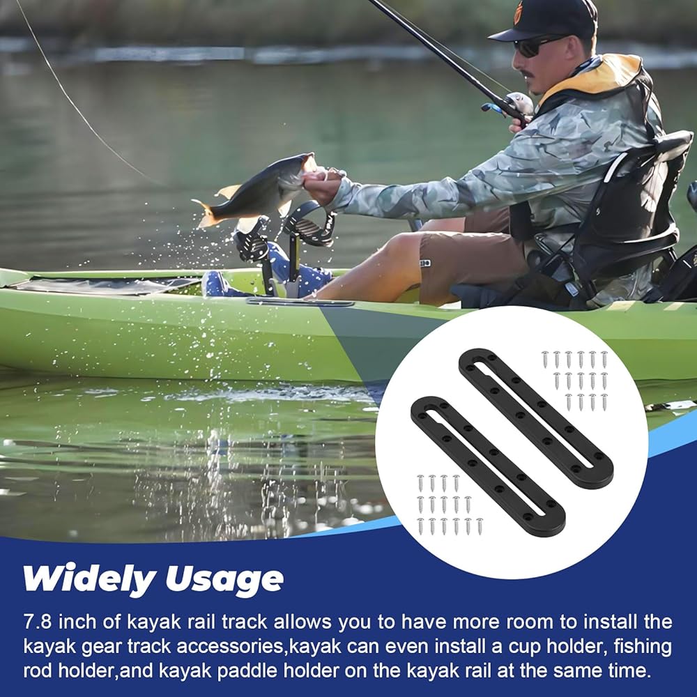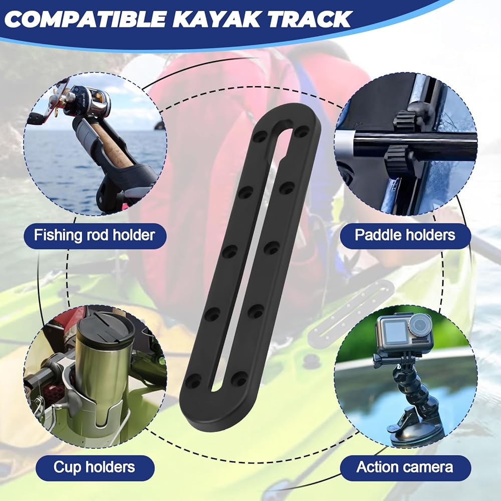 【مسارات تثبيت قوارب الكاياك】متوافقة مع معظم ملحقات دعم مسارات قوارب الكاياك، تناسب مسارات قوارب الكاياك هذه معظم معدات تثبيت مسارات قوارب الكاياك مثل حاملات الأكواب، وحوامل المجداف، وحوامل القضبان، ومرابط المرساة، ومكتشف الأسماك، وGoPros، وما إلى ذلك، مثالية لصيد قوارب الكاياك. .