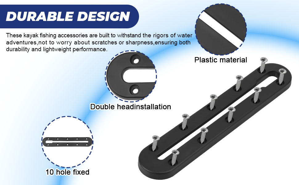 【تصميم متين】مسارات الكاياك مصنوعة من مواد عالية الجودة، هيكل قوي مع لمسة نهائية ناعمة وحواف دائرية، تم تصميم ملحقات صيد الكاياك هذه لتحمل قسوة المغامرات المائية، لا داعي للقلق بشأن الخدوش أو الحدة، مما يضمن المتانة وأداء خفيف الوزن.