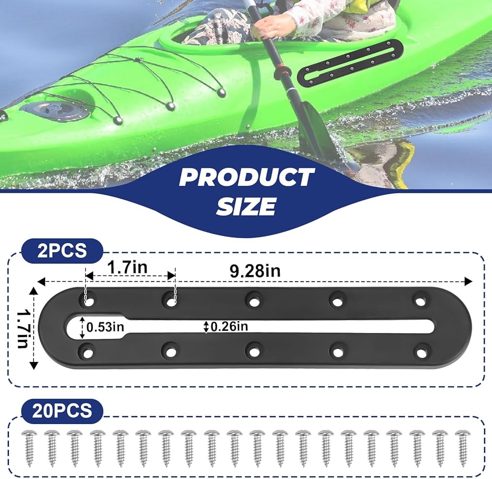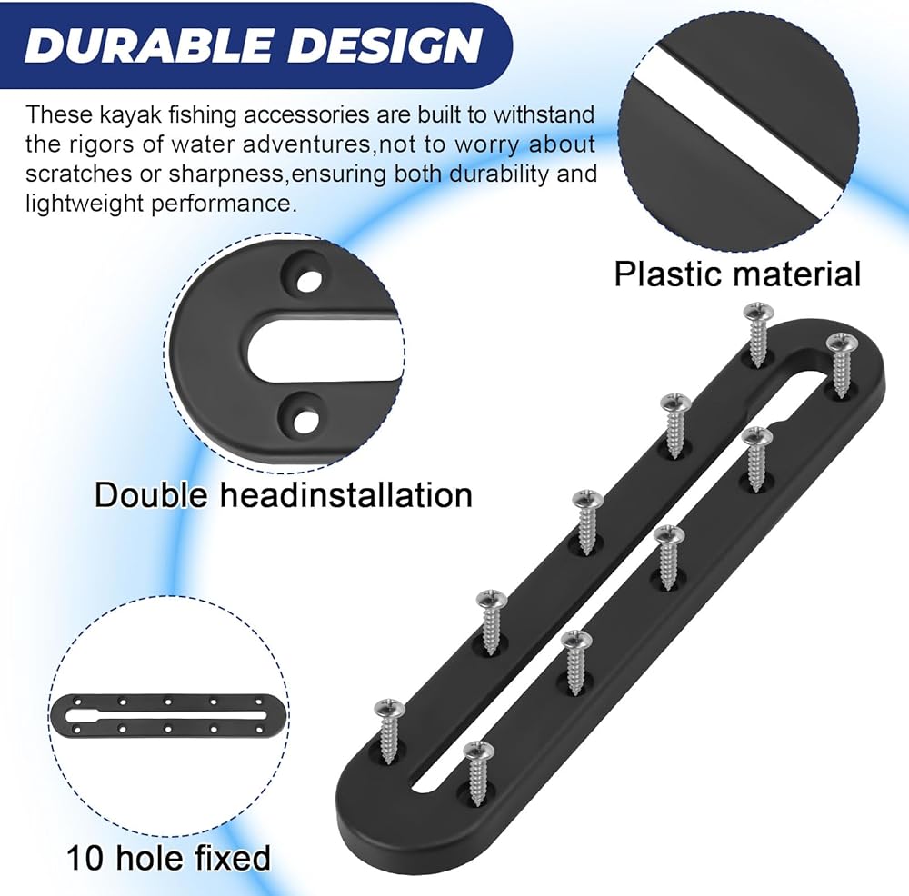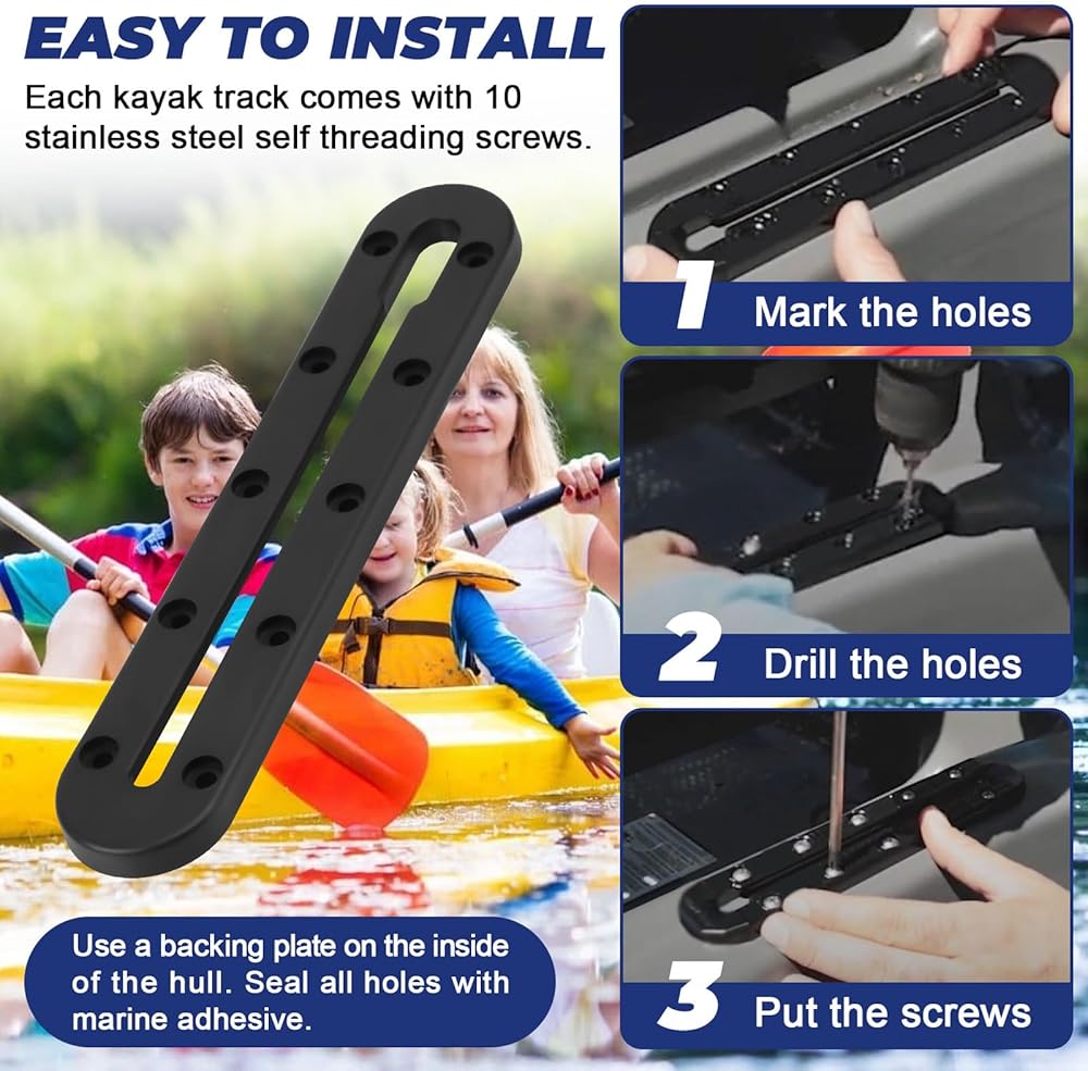 【سهل التركيب】يأتي كل مسار كاياك مع 10 براغي ذاتية الخيط من الفولاذ المقاوم للصدأ؛ اختر سطح التثبيت وتحقق من سهولة الوصول إلى الجانب السفلي، ثم قم بربط القاعدة بالكاياك، لمزيد من القوة، باستخدام لوحة داعمة من الداخل. من الهيكل وإغلاق جميع الثقوب بمادة لاصقة بحرية. مناسب لمسار سكوتي، قم بتركيبه في أي مكان على قوارب الكاياك الخاصة بك في وضع مختلف وفقًا لاحتياجاتك. سواء كانت قوارب الكاياك الخاصة بك مجهزة بمسارات مدمجة أم لا.