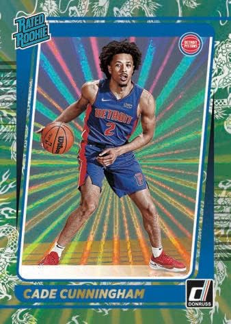 Each Box Contains 11 Inserts/Parallels! Collect the iconic Rated Rookies, including 50 of the top newcomers such as Cade Cunningham, Jalen Green, Evan Mobley, Scottie Barnes, and Jalen Suggs, in 2021/22 Donruss Basketball! Look for a variety of retail exclusive parallels and insert content! Blaster boxes are the only place to find exclusive Holo Orange Lasers and Holo Purple Lasers (#'d/99)! PRODUCT BREAKDOWN: PARALLELS: Look for a variety of exclusive parallel content spread out amongst various retail SKUs! Collect the iconic Rated Rookies, featuring a very talented rookie class! AUTOGRAPHS: There is no shortfall of exclusive autograph content across retail SKUs for 2021/22 Donruss! Look for autographs in Rated Rookies Signatures and Signature Series! INSERTS: Collect the different retail exclusive insert sets! Chase a variety of parallels across the different retail SKUs! 11 Packs Per Box, 8 Cards Per Pack