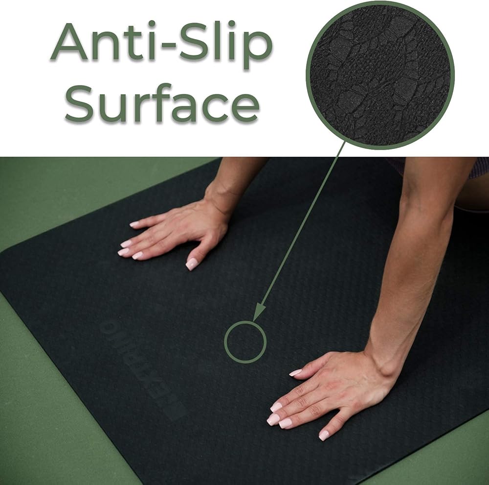 قاع منسوج يبقى ثابتًا 👣 هل سئمت من انزلاق سجادة اليوجا أثناء ممارستك؟ تتميز سجادة التمدد والتنقل لدينا بقاعدة مزخرفة لن تنزلق حتى في أكثر دروس اليوغا الساخنة.