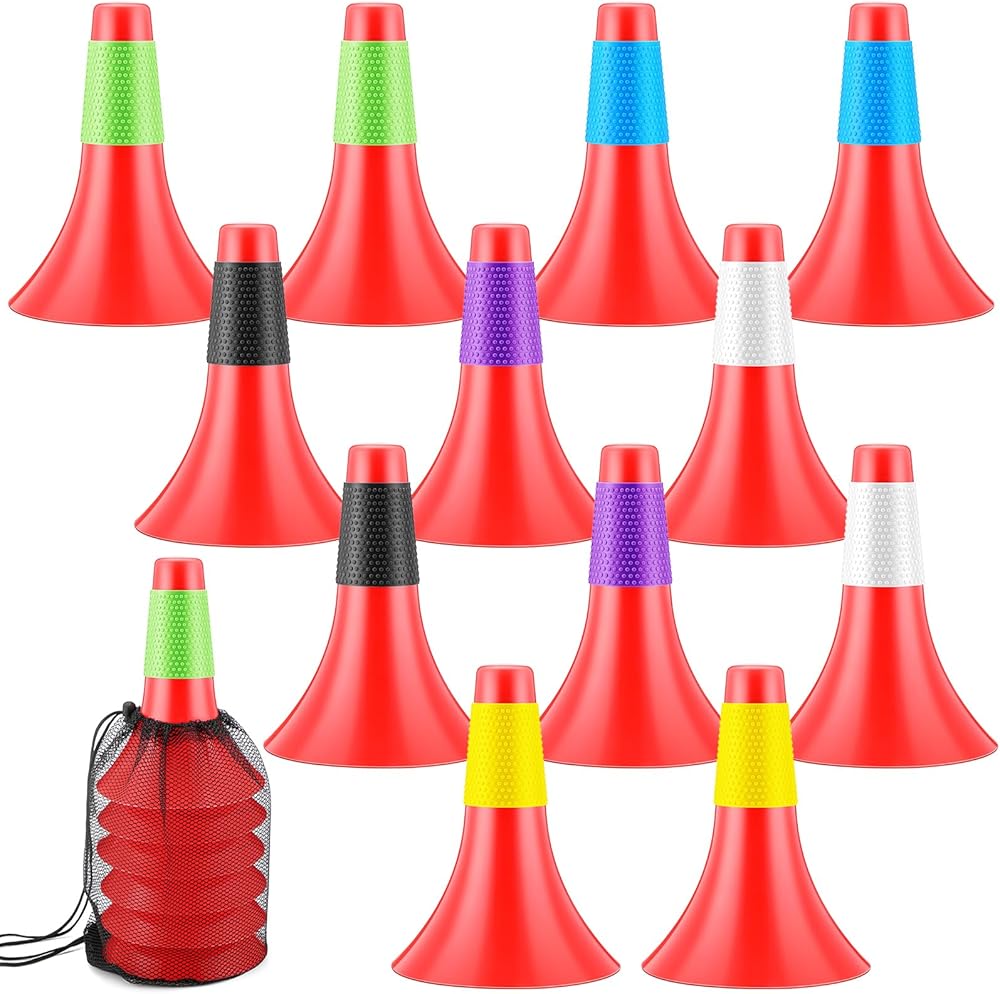 Tuanse 12 حزمة من المخاريط الرياضية لتدريب خفة الحركة مقاس 9 بوصة، مخاريط مرنة مع حقيبة حمل، مخاريط تدريب كرة السلة، مخاريط رياضية بلاستيكية لخفة الحركة للتدريبات الداخلية والخارجية (أحمر)