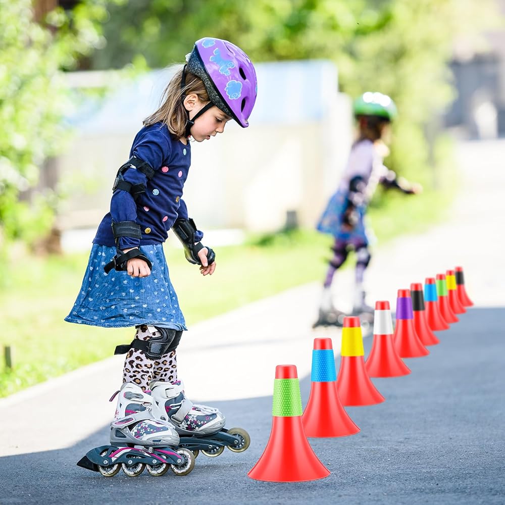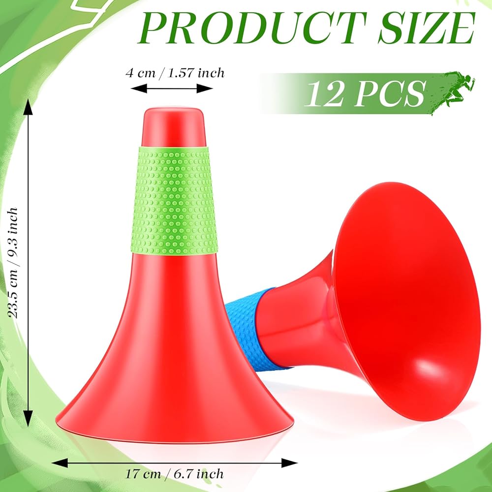 • تصميم عملي: تم تصميم مخاريط حركة التدريب الرياضية بألوان زاهية وأكمام بلاستيكية مضادة للانزلاق، مع حواف دائرية، وهي جيدة للإمساك والألوان الزاهية، تجذب الانتباه بسهولة، وتساعد على تحسين كفاءة التدريب الخاص بك؛ تصميم شكل القرن ثابت، ومناسب للاستخدام الداخلي والخارجي