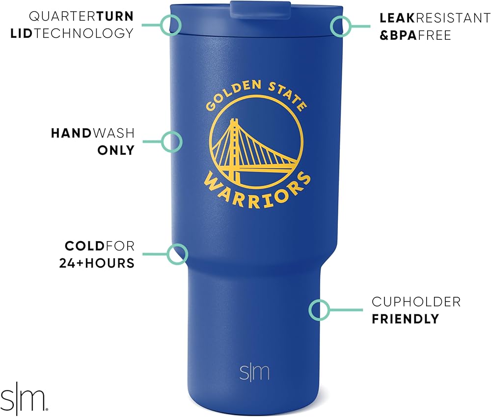 The Simple Modern Officially Licensed NBA 30oz Trek Tumbler is double walled and vacuum insulated to keep your drink hot or cold for hours. The cup is aesthetically designed for comfort. It comes with a flip lid and two straws so you can enjoy your favorite beverage on the go. The Trek is made from 18/8 stainless steel and fits standard cupholders.