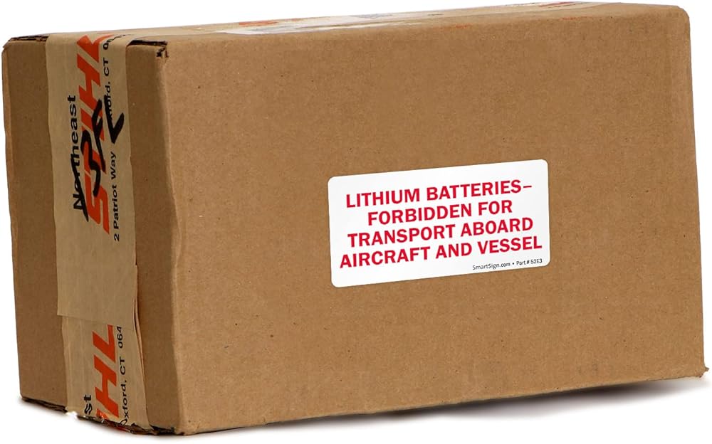 ملصقات بطارية الليثيوم. عند الشحن، تأكد من الحفاظ على توافقك مع DOT مع ملصقات وضع العلامات المحظورة على بطارية الليثيوم.