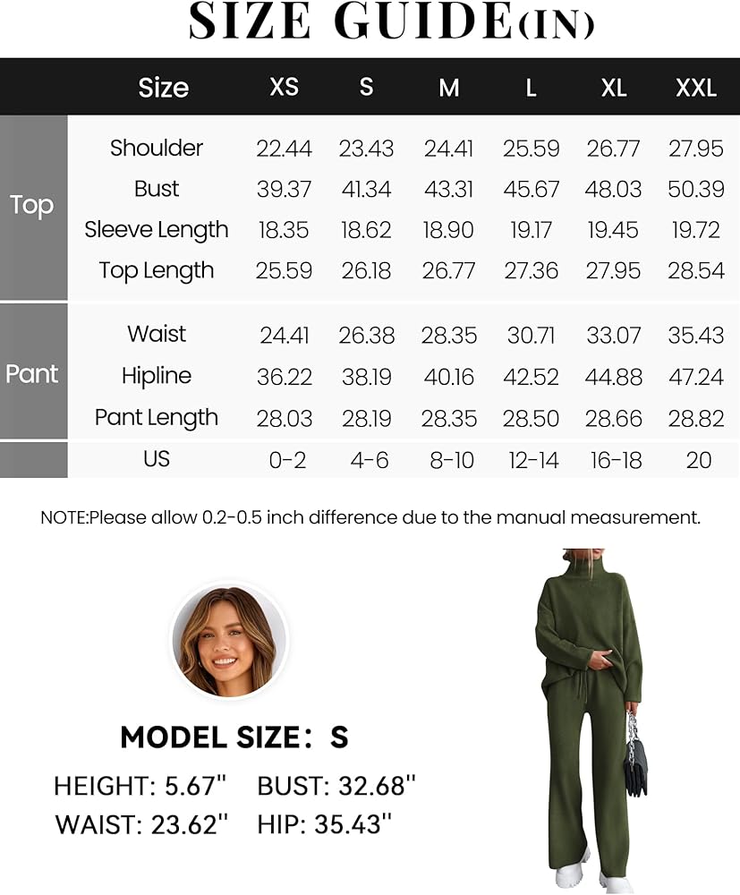 الميزات---(XS=US 0-2، S=US 4-6، M=US 8-10، L=US 12-14، XL=US 16-18، XXL=US 20) / قطعتان للخريف والشتاء مجموعة سترة للنساء 2024 / سترات بأكمام طويلة للنساء / بلوفر علوي برقبة عالية / سترات بكتف منسدل / بنطال رياضي برباط / بنطال طويل بأرجل واسعة / ملابس صالة متماسكة مضلعة / مجموعة متماسكة مكتنزة 2 قطعة / مجموعات صالة قابلة للتمدد / مجموعات مطابقة مريحة للنساء / بدلة رياضية دافئة للنساء