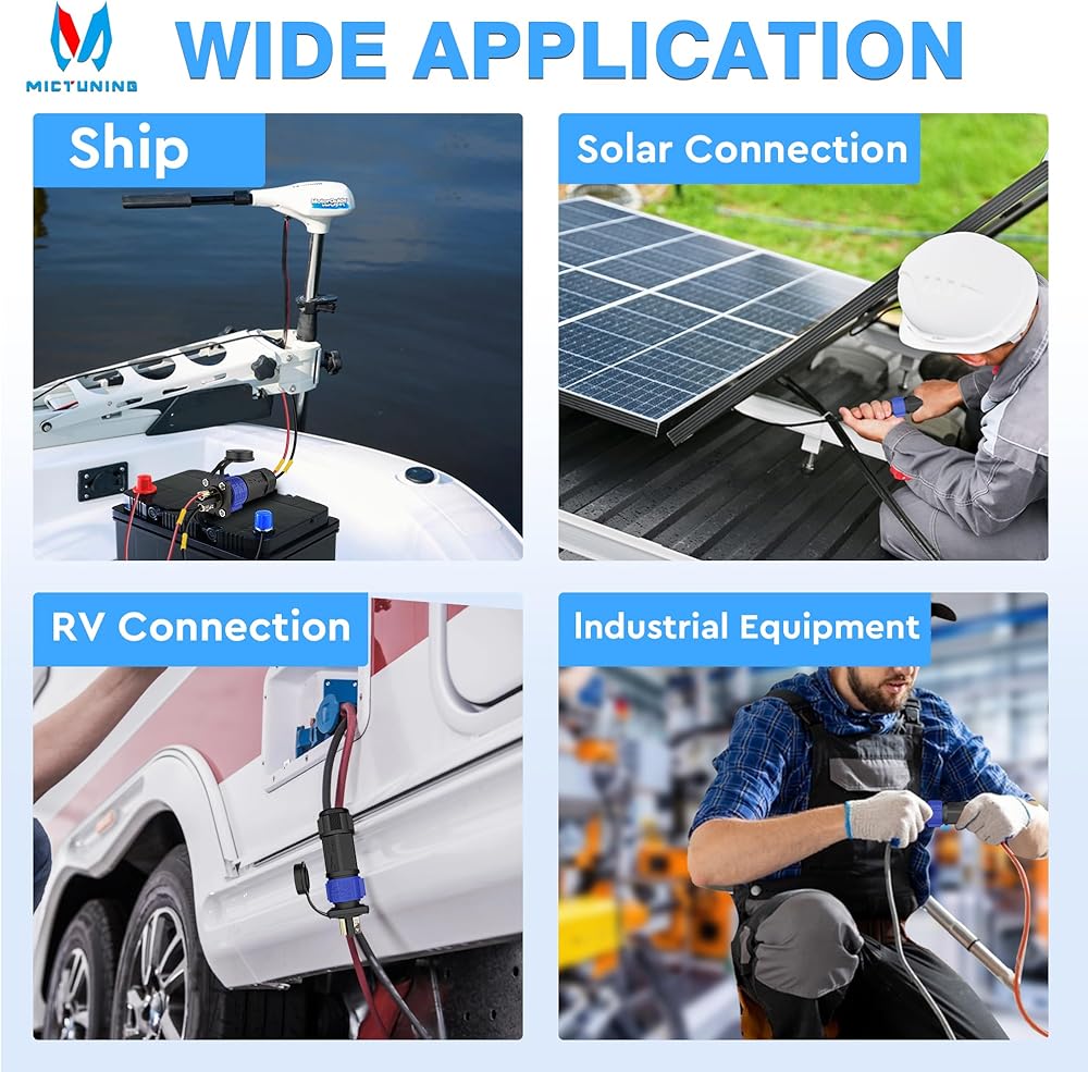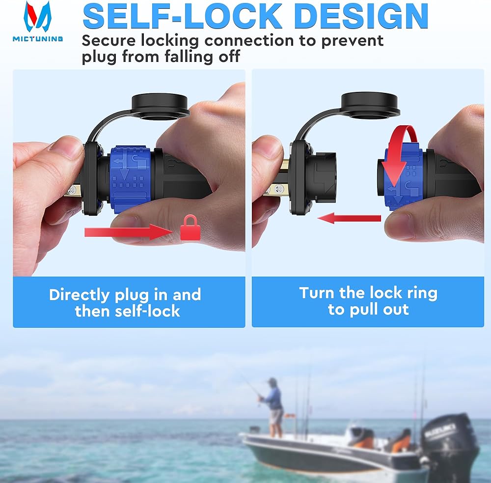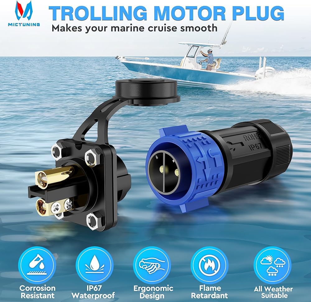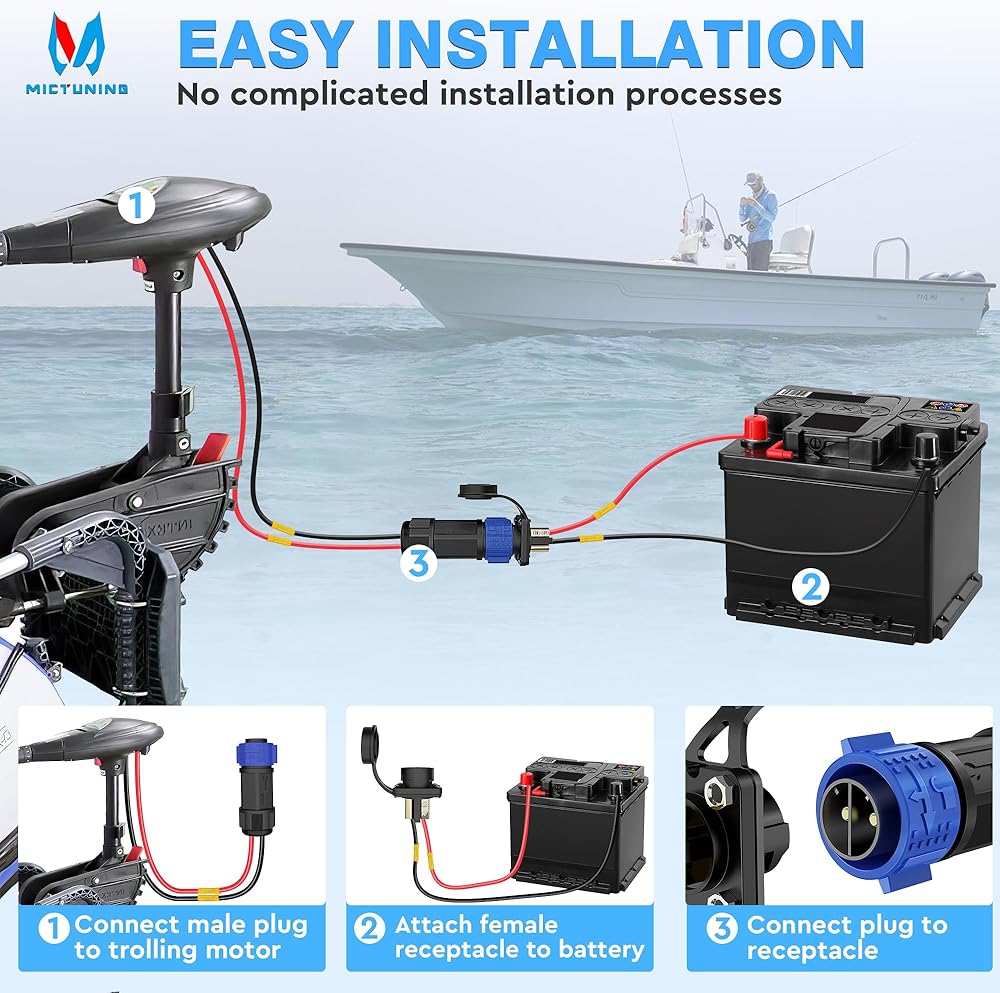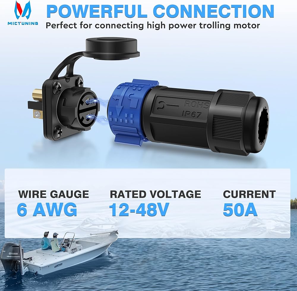 MICTUNING 2 سلك 50A مجموعة أوعية قابس محرك التصيد، موصل طاقة تيار مستمر للقوارب البحرية مقاوم للماء 12 فولت/24 فولت/ 36 فولت/48 فولت لمحركات التصيد المتوافقة مع 6 أسلاك AWG