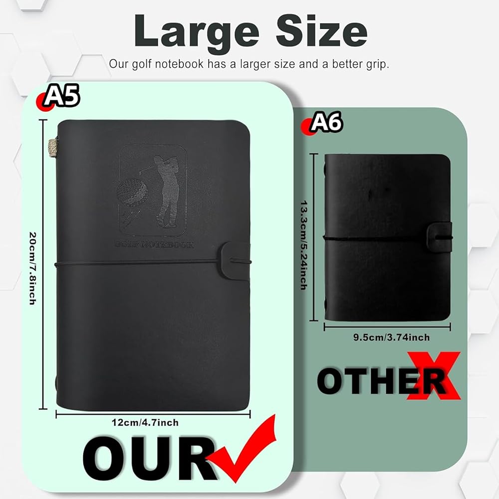 【عملية للتسجيل】: تم تصميم مجلة ممارسة الجولف خصيصًا للحظات لا حصر لها على المساحات الخضراء الخضراء، ببراعة لتسهيل تتبع وتأمل تقدم جلسة تدريب الجولف الخاصة بك. يتفوق بكثير على فائدة حامل بطاقات نتائج الجولف، حيث يوفر كتاب بطاقات نتائج الجولف المغطى بالجلد سطح كتابة لا مثيل له، مما يضمن تجربة كتابة سلسة وسلسة.