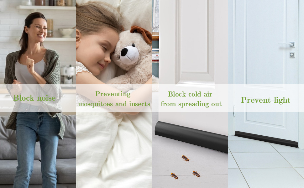 • متعددة الاستخدامات: كحل عازل للصوت، فإن سدادات الباب هذه في الجزء السفلي من الباب مثالية للاستخدام في المنازل أو المكاتب أو أي مساحة أخرى حيث تكون الضوضاء والتيارات الهوائية مصدر قلق.