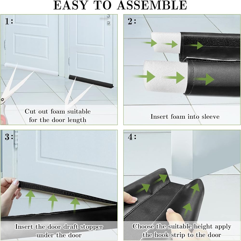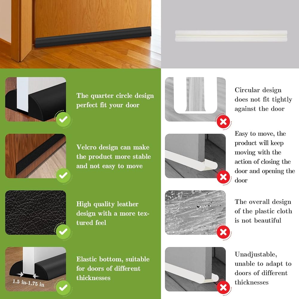 • مواد فاخرة: مصنوع من مواد جلدية عالية الجودة، هذا مانع الصوت تحت الباب متين ويدوم طويلاً. القماش عالي الجودة لن يضر بأرضيتك على الإطلاق.