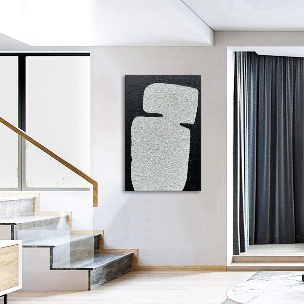Main feature: this abstract vertical painting, with its thick texture, when the hand touches its surface, it has a strong concave and convex feeling,black and white match, simple design style, but fashionable generous, will never be out of date.