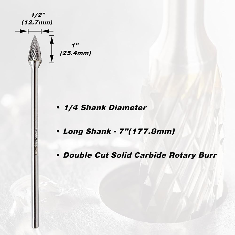 شكل أسطواني مزدوج القطع بنهاية نصف قطر SC-5L7، الحجم: 7 بوصة (177.8 مم) طول الساق، 1/4 قطر الساق، 1/2 بوصة قطر القاطع، 1 بوصة طول القطع