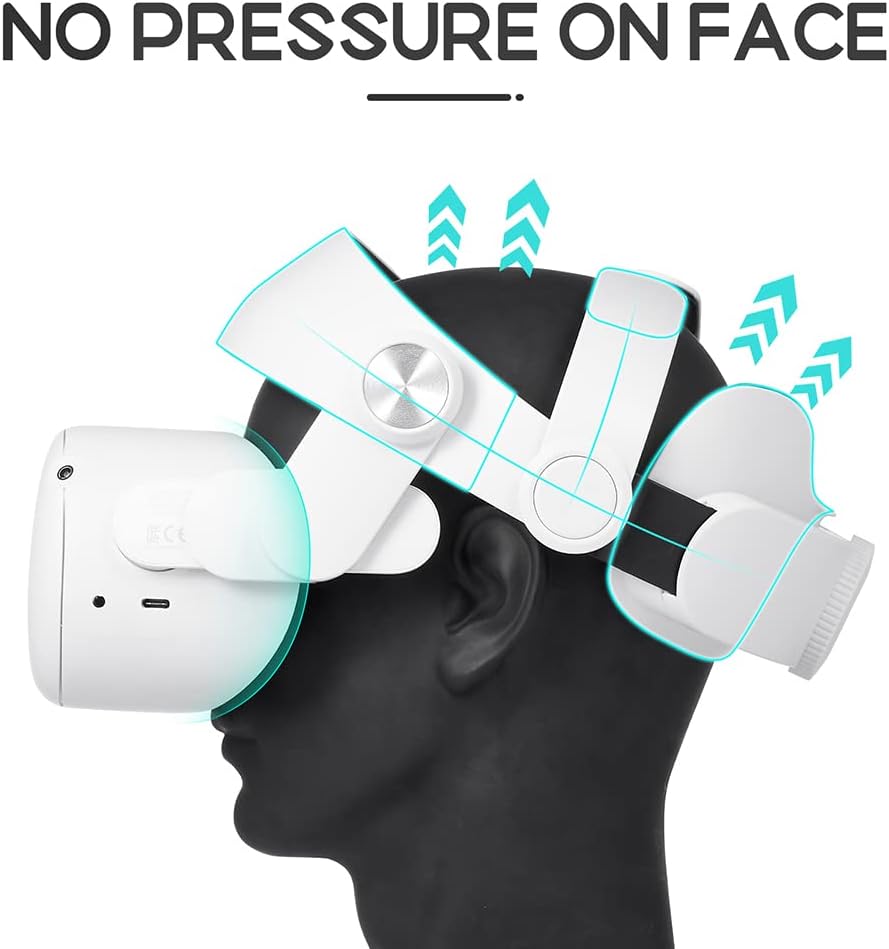 [دعم رأس قابل للتعديل] يزن حزام الرأس بالكامل 204 جرام، تصميم حزام الرأس الخاص بنا من ميتا كويست 2 يحتوي على 5 عقد مختلفة يمكن تعديلها، يمكنك التعديل بحرية على الحالة الأكثر راحة للتكيف مع أحجام مختلفة من الرؤوس، مما سيجعل حزام الرأس أكثر استقرارًا وراحة، يسمح لك بإيجاد الزاوية العمودية المثالية من عينيك إلى عدسات كويست 2، ويناسب محيط الرأس من 18.1 إلى 30.3 بوصة.