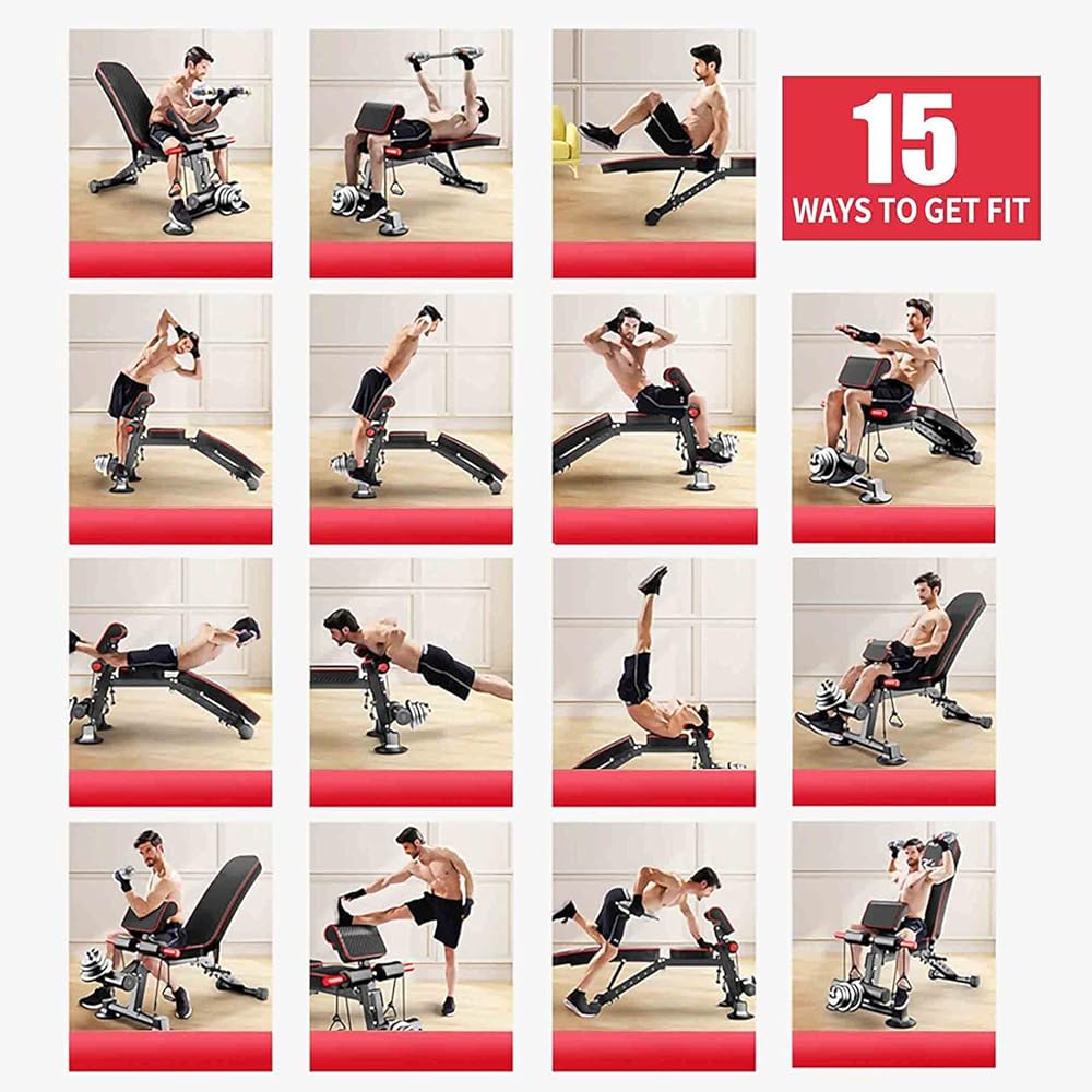 • 💪【SUPER SALE POINTS】:Adjustable weight bench space design conforms to the human body engineering,fitness enthusiasts of all heights have room to do exercises like leg extensions,the enlarged and lengthened double-deck preacher pad is very effective for the double hands dumbbell bending, roman chair abdomen bending and other functions. Whole bench leather is 1.4mm thickness,comfort and exquisite feeling far beyond competitors, 2 in 1 weight rod can fit dumbbell & Olympic weight plates..