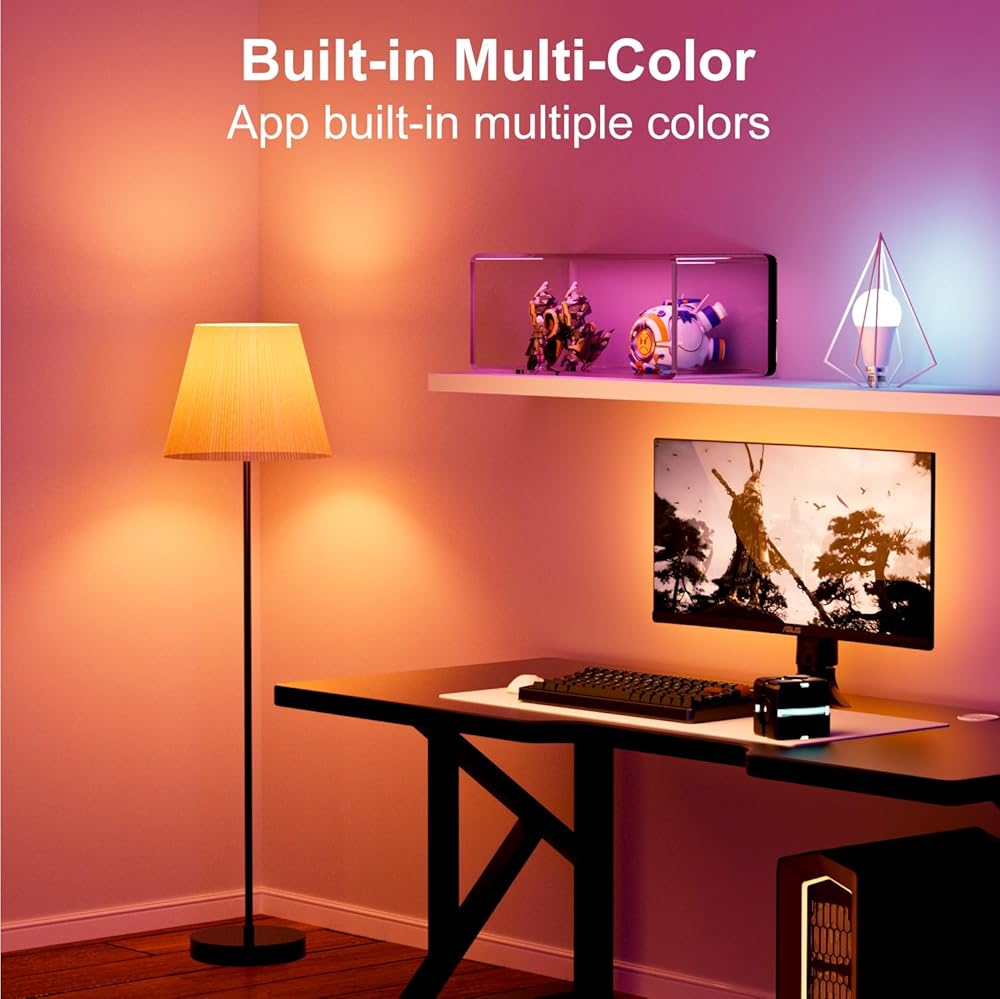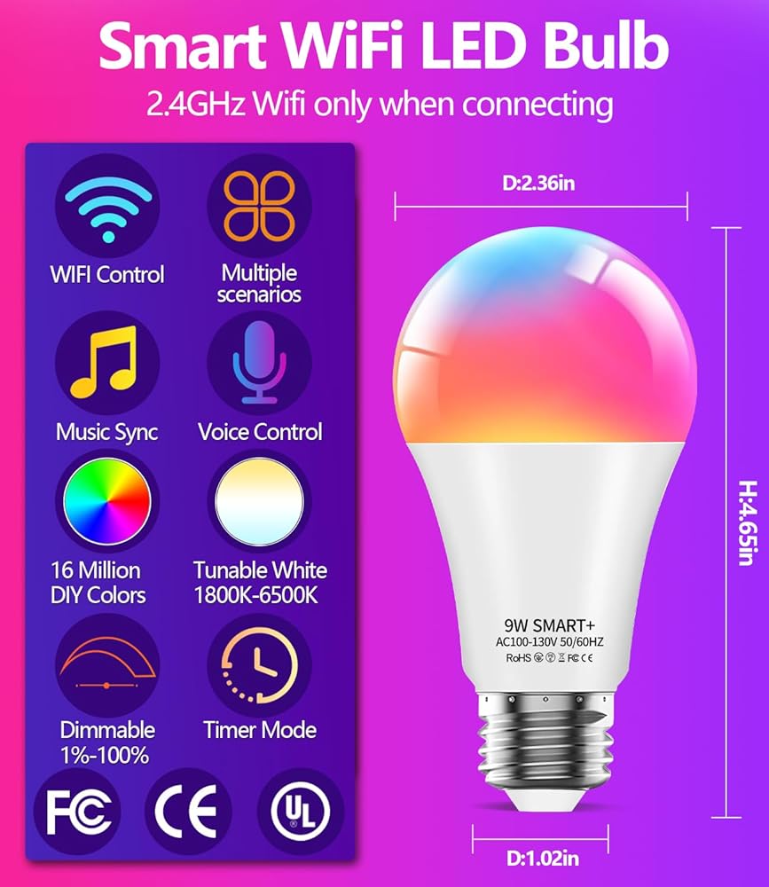 مصابيح الإضاءة الذكية Luckystyle، 9W A19 E26 800LM WiFi Bluetooth LED لمبات متوافقة مع Alexa وGoogle Assistant والمنزل، 16 مليون لون لمزامنة الموسيقى متغيرة الألوان لمبة أضواء RGBWW قابلة للتعتيم (4)