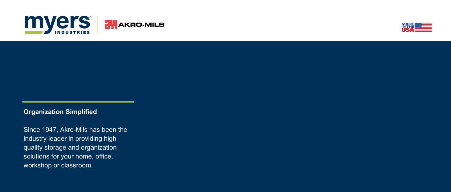 Open chrome wire design shelving brightens stockrooms, minimizes dust accumulation and improves visibility for stored contents. Akro-Mils products save time and money by helping to increase material handling efficiency in virtually any industry. Their broad range of storage, organization, and transportation products are used to shorten assembly times, maintain accurate inventories, optimize storage space, and improve parts protection.