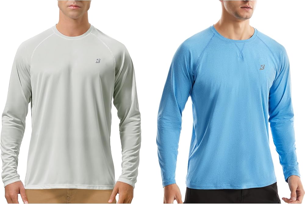 (الحجم: L) 2 حزمة من قمصان الحماية من أشعة الشمس فوق البنفسجية 50+ للرجال في الهواء الطلق بأكمام طويلة وعامل حماية من الشمس SPF للغوص والصيد والمشي لمسافات طويلة والسباحة