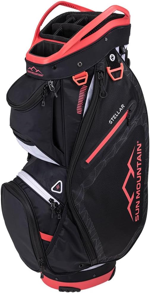 The Stellar is a lightweight, full-featured riding cart bag. For convenience, all pockets are front-facing, so they are accessible when the bag is on a cart and the top has two integrated lift-assist handles for lifting the golf bag on and off the cart. The full-length, individual club dividers protect clubs and prevent the migration of club shafts.